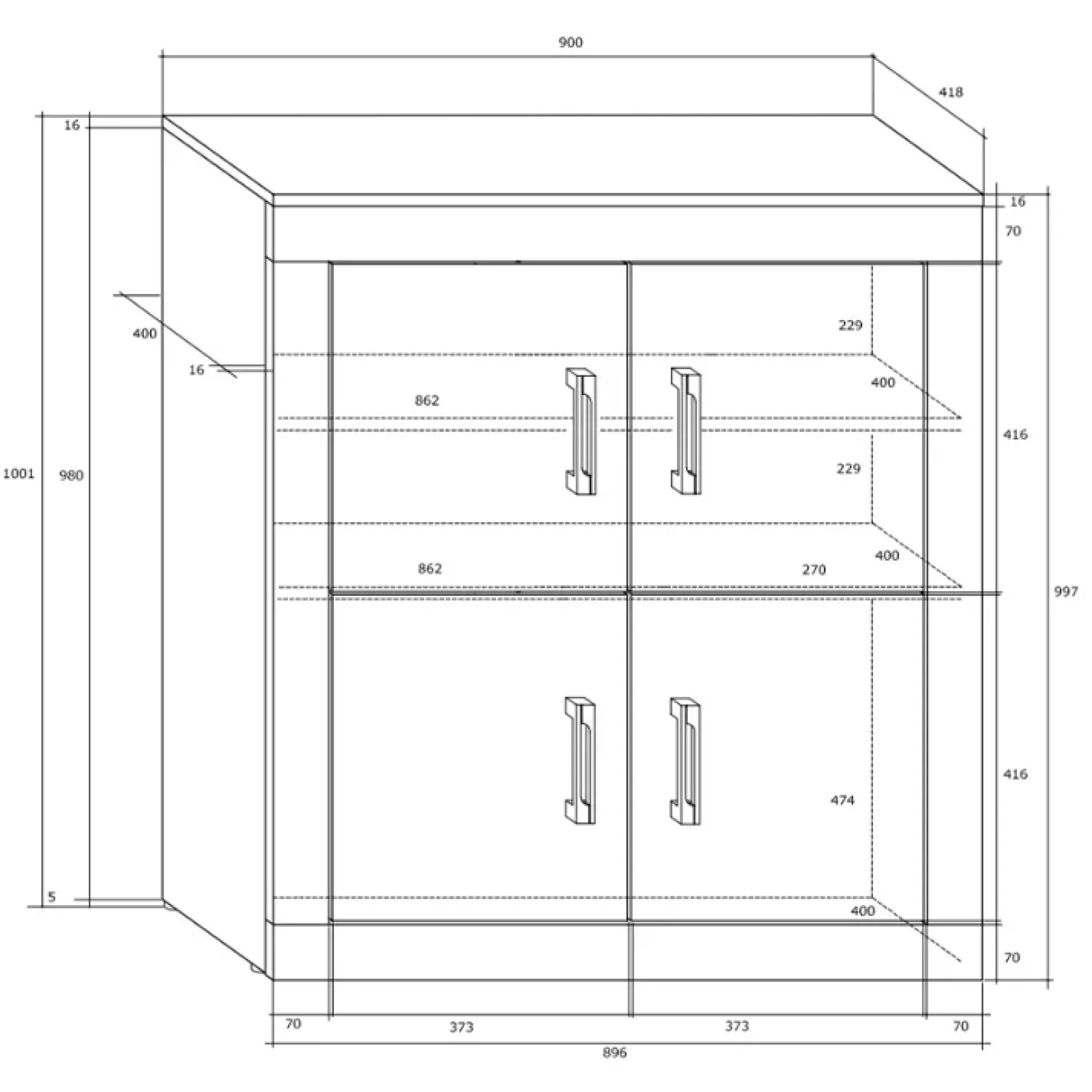 La madia Ester Gihome ® risponde perfettamente alle tue esigenze. Dotata di quattro ripiani con apertura classica tramite maniglia, grazie alle linee essenziali e alle finiture neutre e brillanti, dona risalto all’ambiente senza tralasciare la funzionalità.