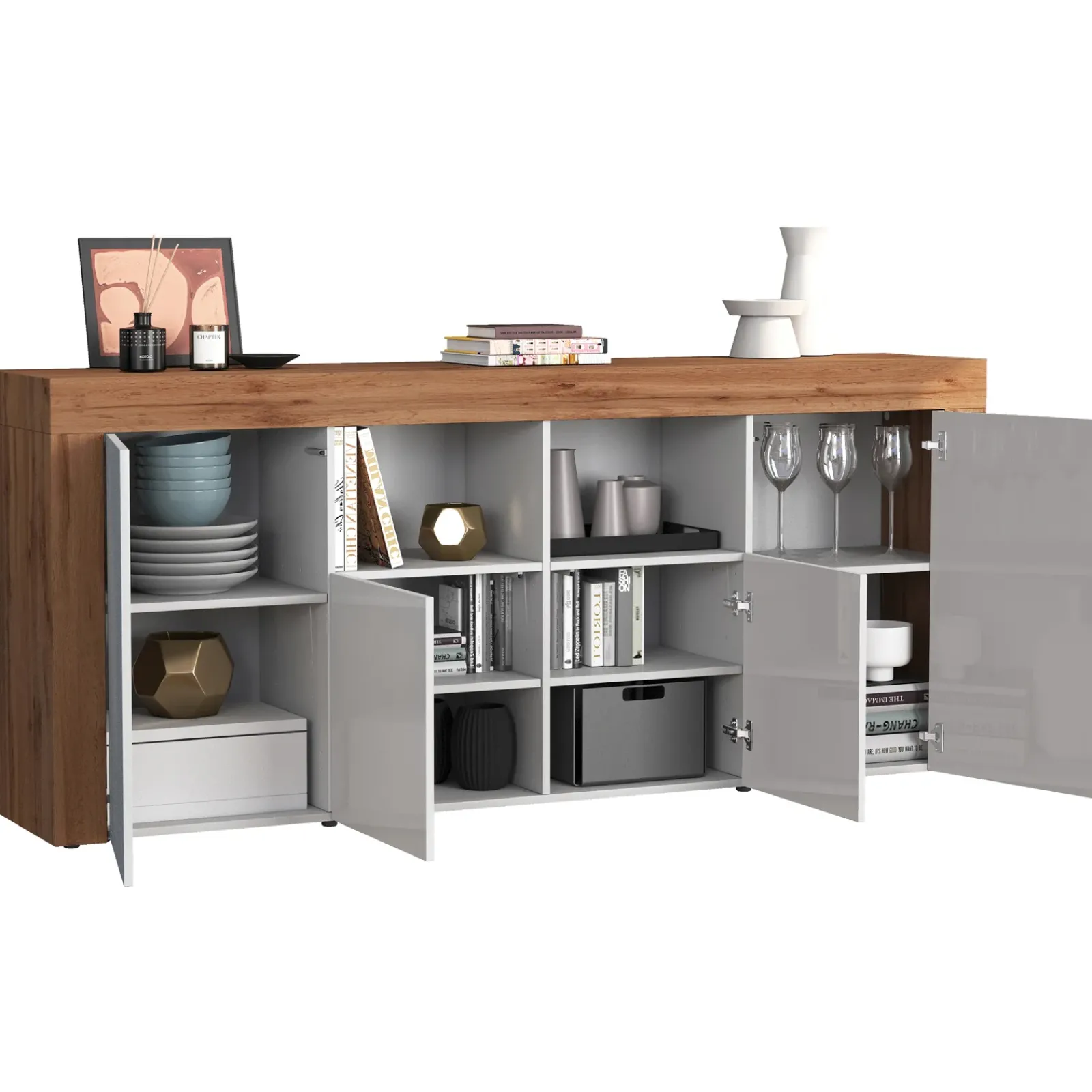 Garnero Arredamenti Credenze Moderne|Madie Moderne-Madia moderna 200x85h cm bianco lucido rovere Block Bianco Lucido – Rovere