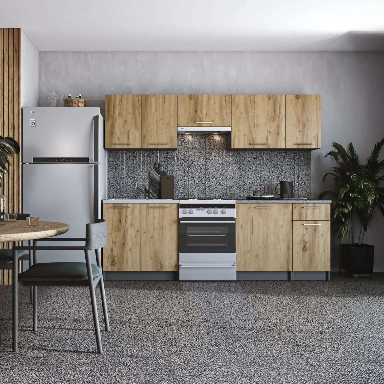 Garnero Arredamenti Cucine Complete|Cucine Complete-Cucina 240cm moderna componibile lineare quercia antracite Urban Quercia – Antracite
