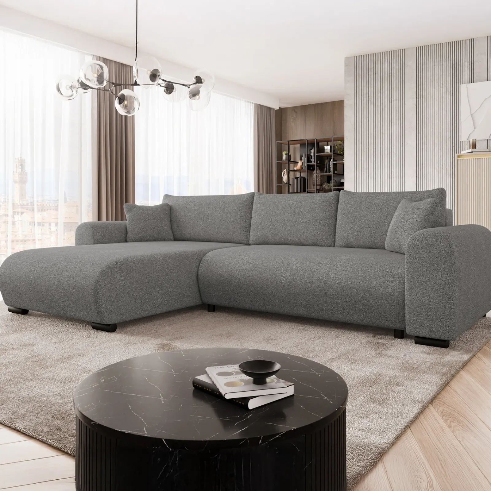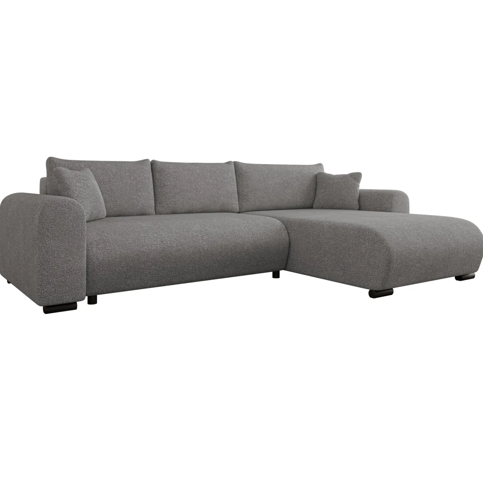Divano letto angolare 4 posti 285x188cm con contenitore tessuto velo grigio scuro Soft