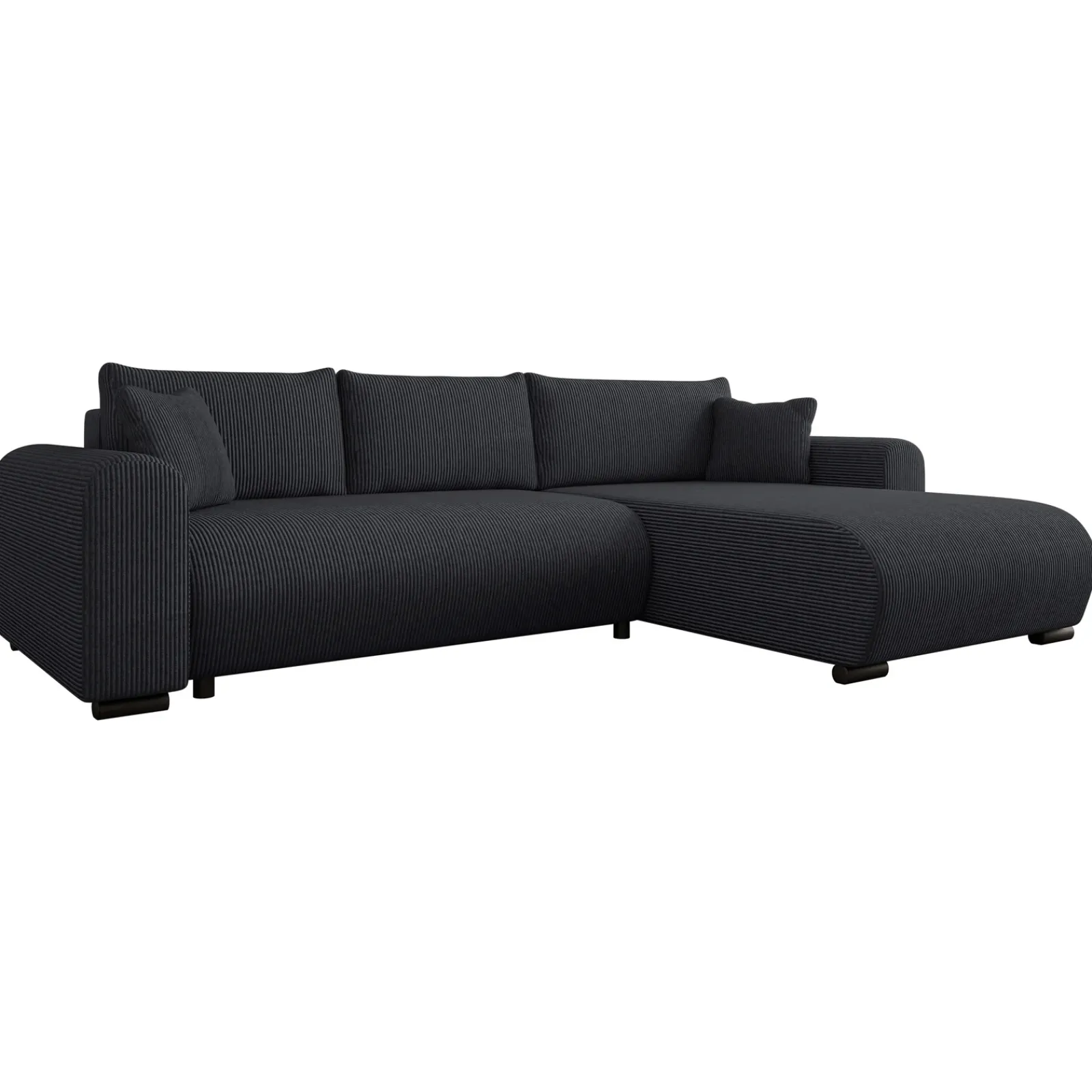 Garnero Arredamenti Divani Angolari|Divani Letto-Divano letto angolare 4 posti 285x188cm con contenitore tessuto velluto a coste nero Soft Velluto a Coste Poso Nero