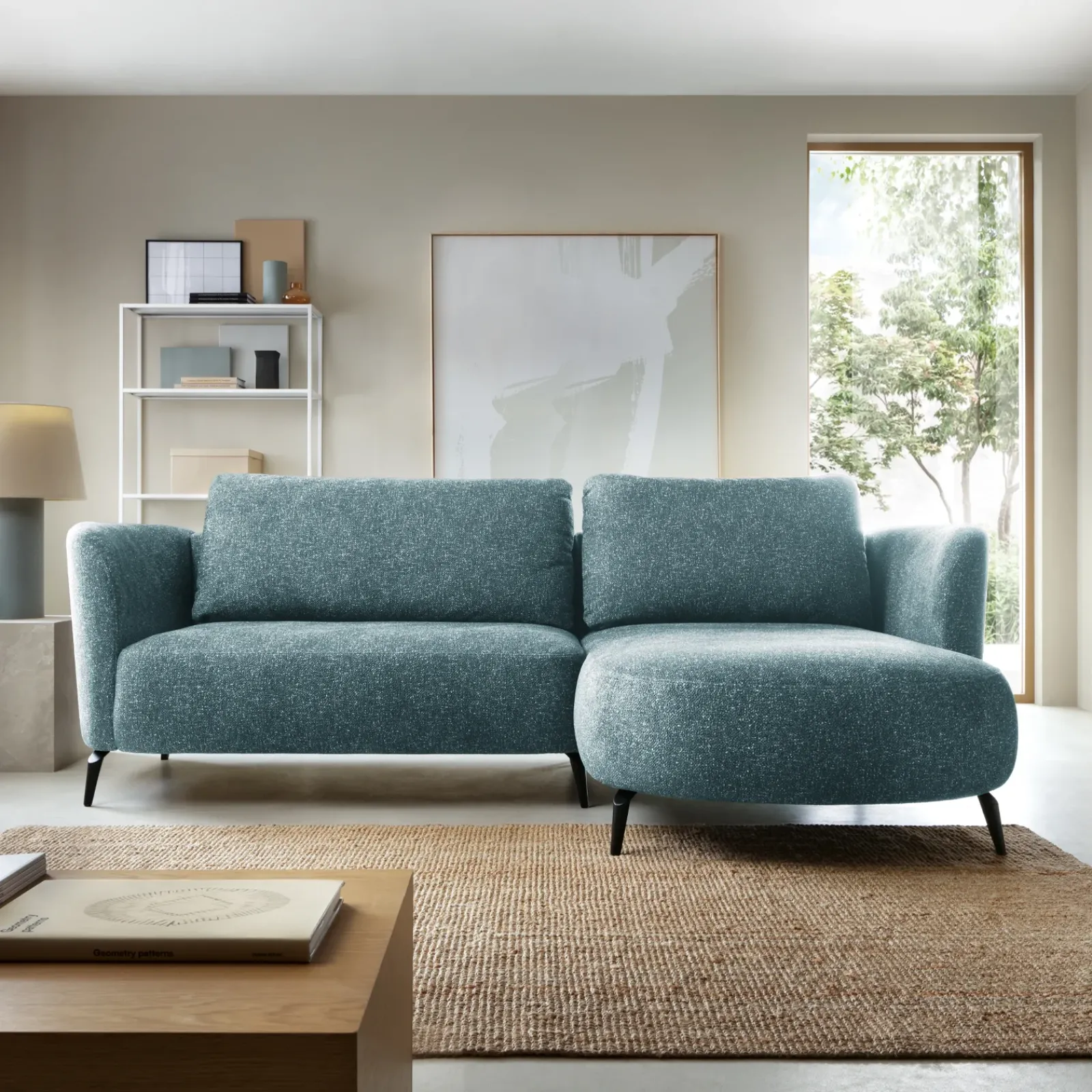 Garnero Arredamenti Divani Angolari|Divani Letto-Divano letto angolare destra 3 posti 260x180cm tessuto bouclè azzurro Repose Tessuto Bouclè Blur Azzurro