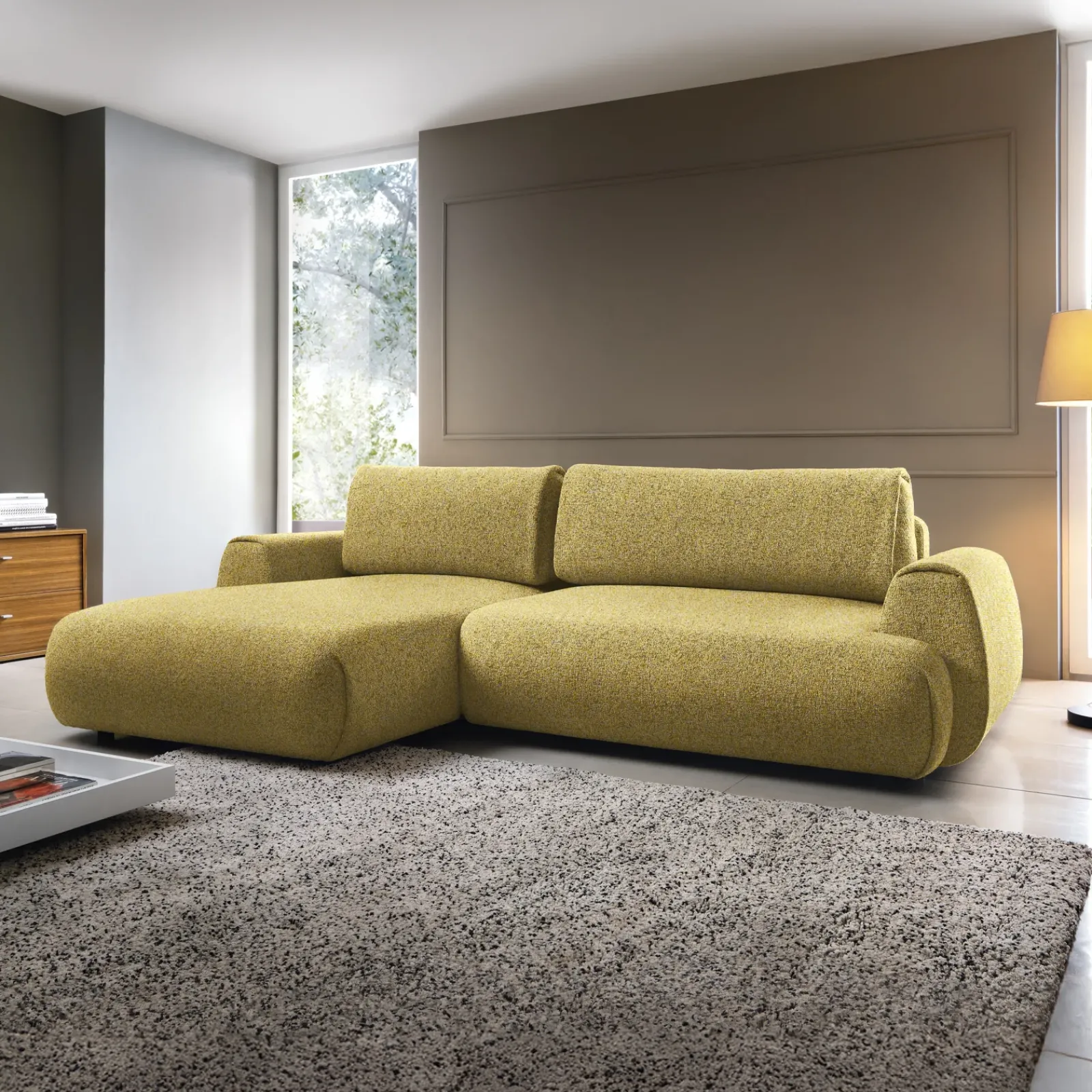 Garnero Arredamenti Divani Angolari|Divani Letto-Divano letto angolare sinistra 3 posti 270x167cm tessuto giallo Cloudify Tessuto Puente Giallo