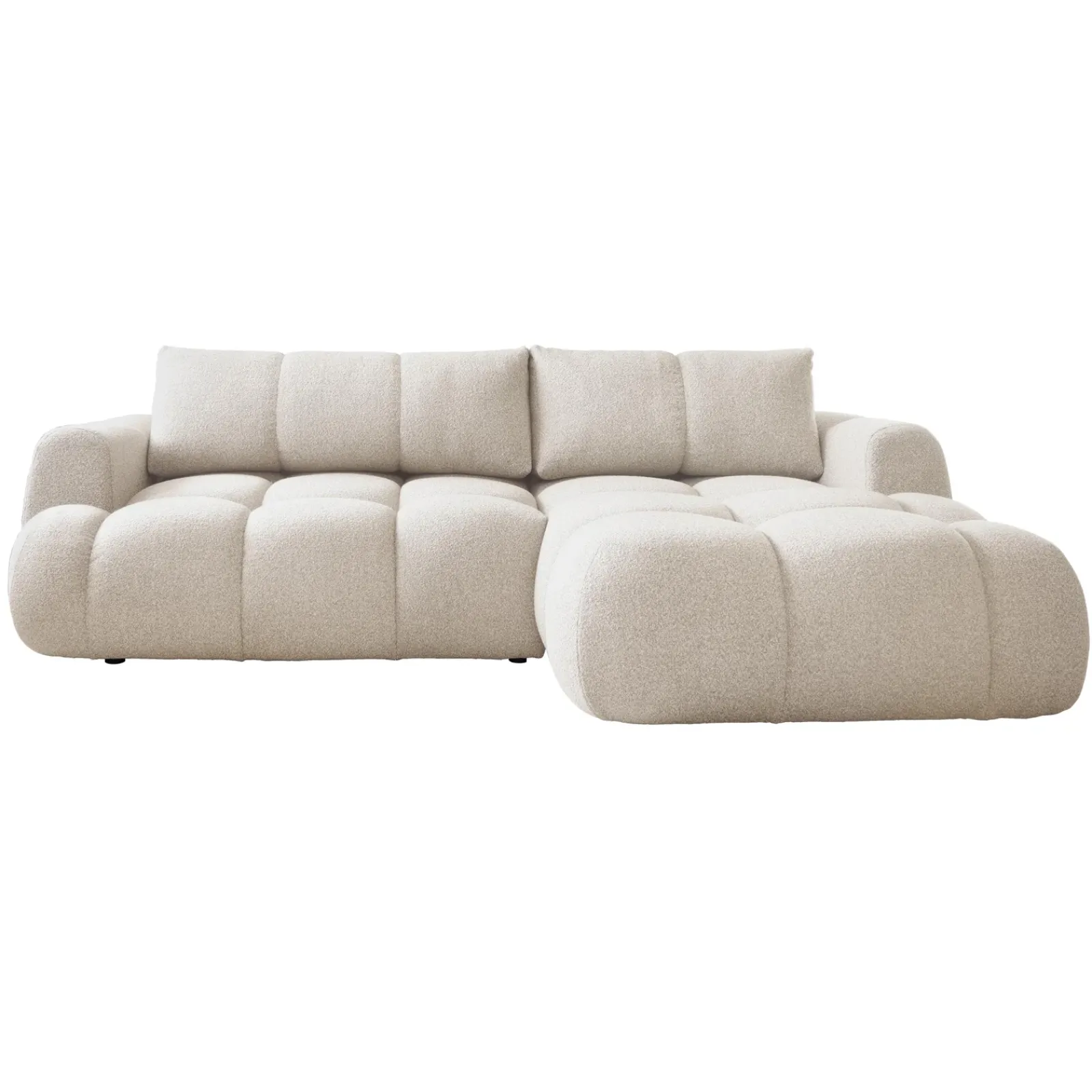 Garnero Arredamenti Divani Angolari|Divani Letto-Divano letto con angolo a destra 4 posti 270x173cm con contenitore Litos Tessuto Bouclé Bianco Crema