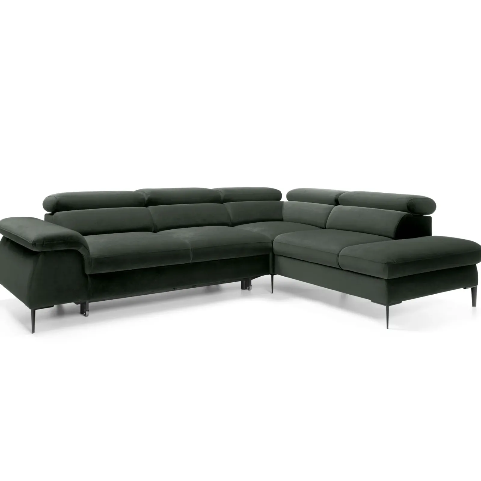 Garnero Arredamenti Divani Angolari|Divani Letto-Divano letto regolabile angolare destra 5 posti 280x214cm tessuto verde Snuggity Tessuto Vellutato Vogue Verde