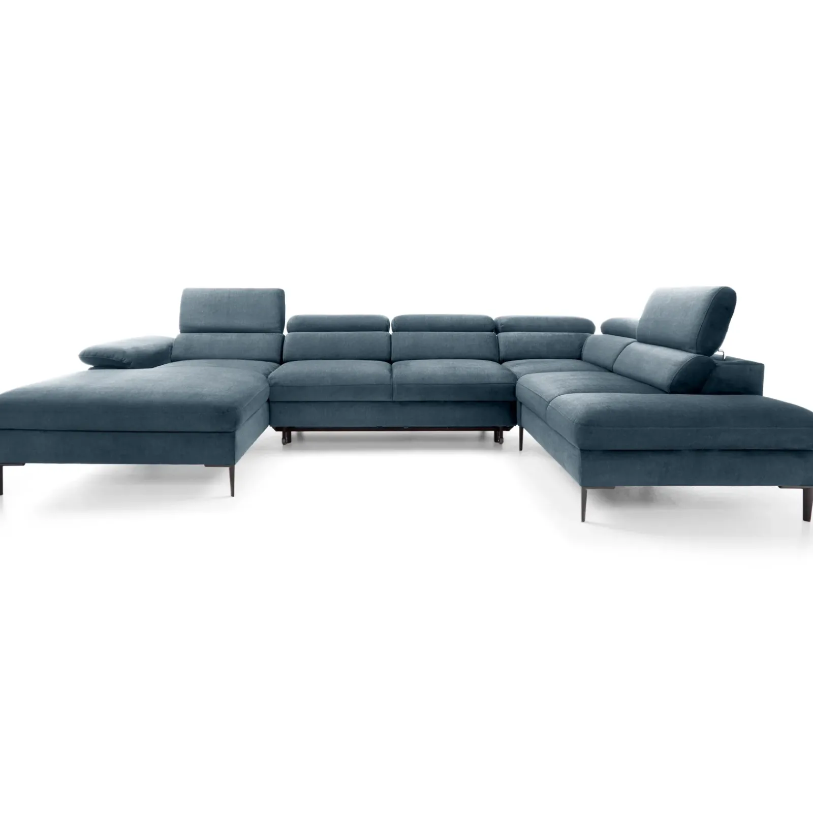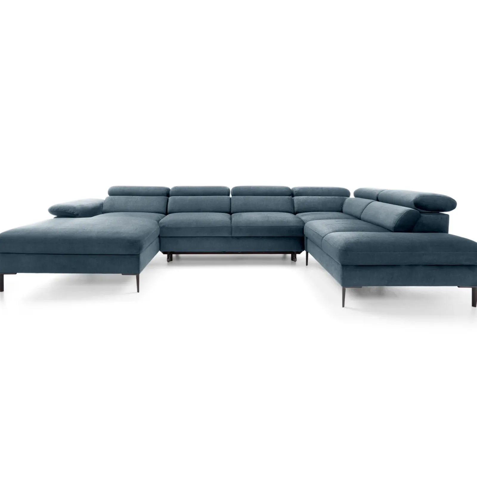 Garnero Arredamenti Divani Angolari|Divani Letto-Divano letto regolabile angolare destro 5 posti 353x214cm tessuto azzurro Calmora Tessuto Vellutato Vogue Azzurro