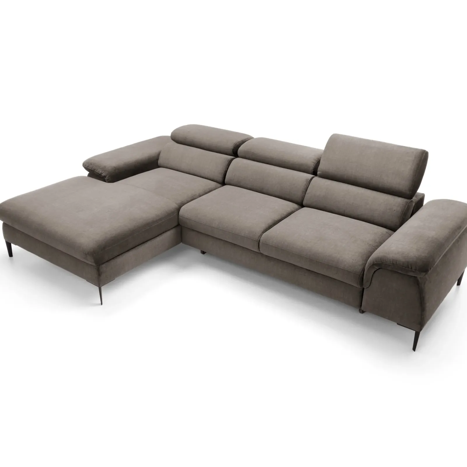 Garnero Arredamenti Divani Angolari|Divani Letto-Divano letto regolabile angolare sinistra 4 posti 288x182cm tessuto beige Loungey Tessuto Vellutato Vogue Beige