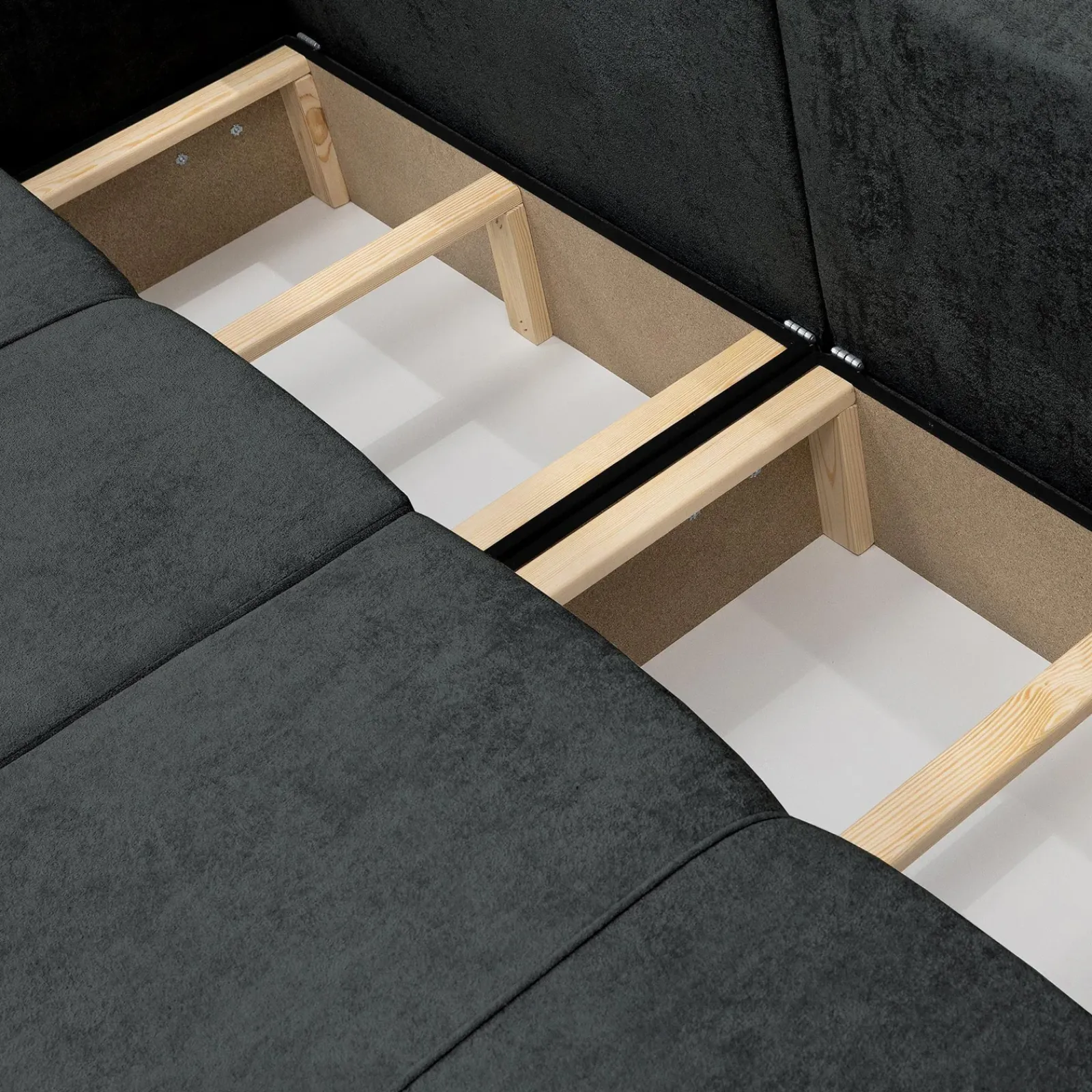 Divano letto 3 posti 248x90cm con contenitore in tessuto velo nero Floty
