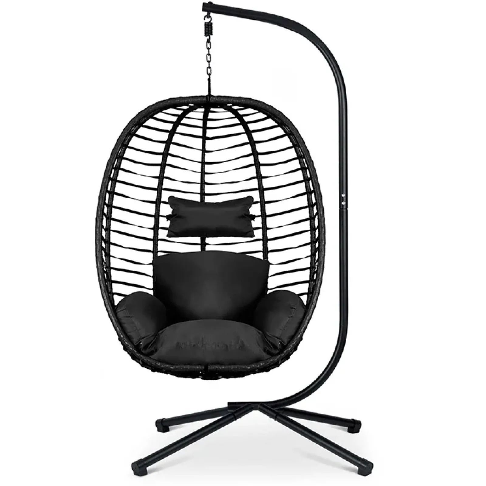 Poltrona da giardino a dondolo sospesa con cuscini nera Swing