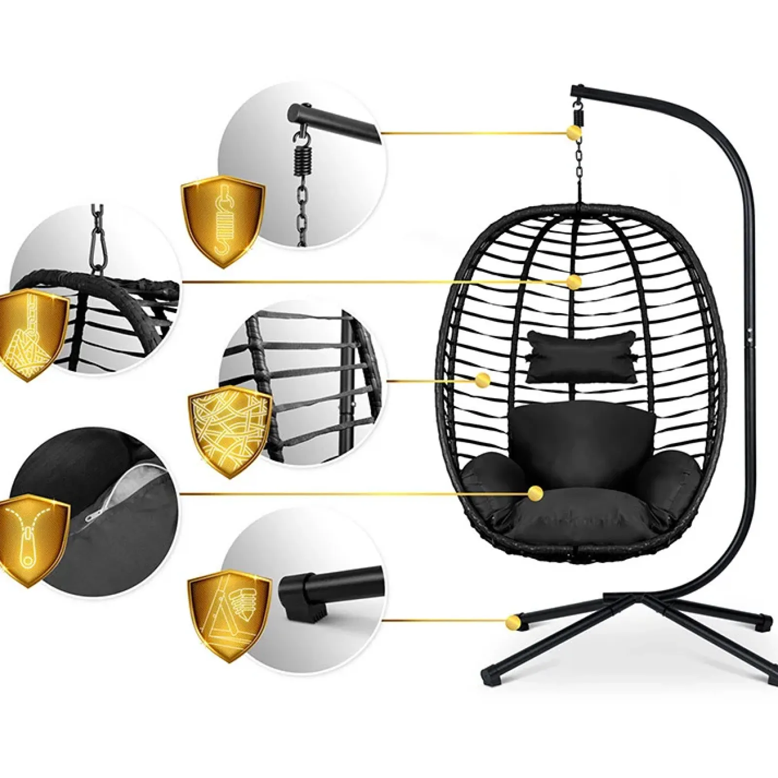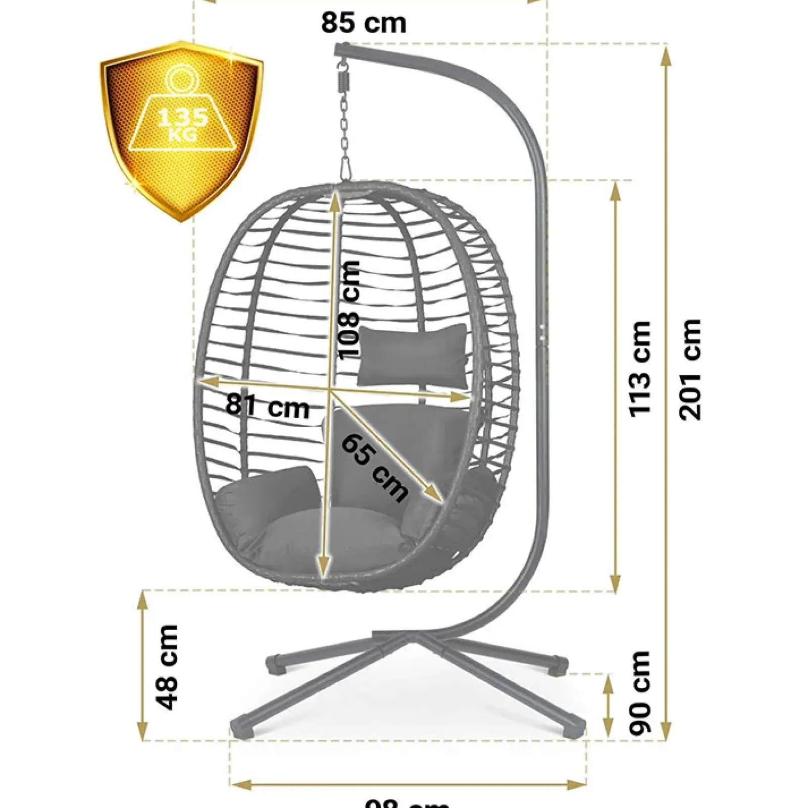 Non rinunciare al comfort e allo stile, aggiungi un tocco di eleganza al tuo spazio esterno con la sedia a dondolo Sweeng oggi stesso. Siediti, rilassati e lasciati trasportare dalla brezza del tuo giardino mentre vivi ogni istante con stile e raffinatezza.Il suo design unico, che richiama le linee sinuose e avvolgenti di un bozzolo, ti avvolge in un abbraccio. E non dimenticare il cuscino incluso, che aggiunge un tocco di morbidezza e eleganza al tuo momento di relax all’aria aperta.