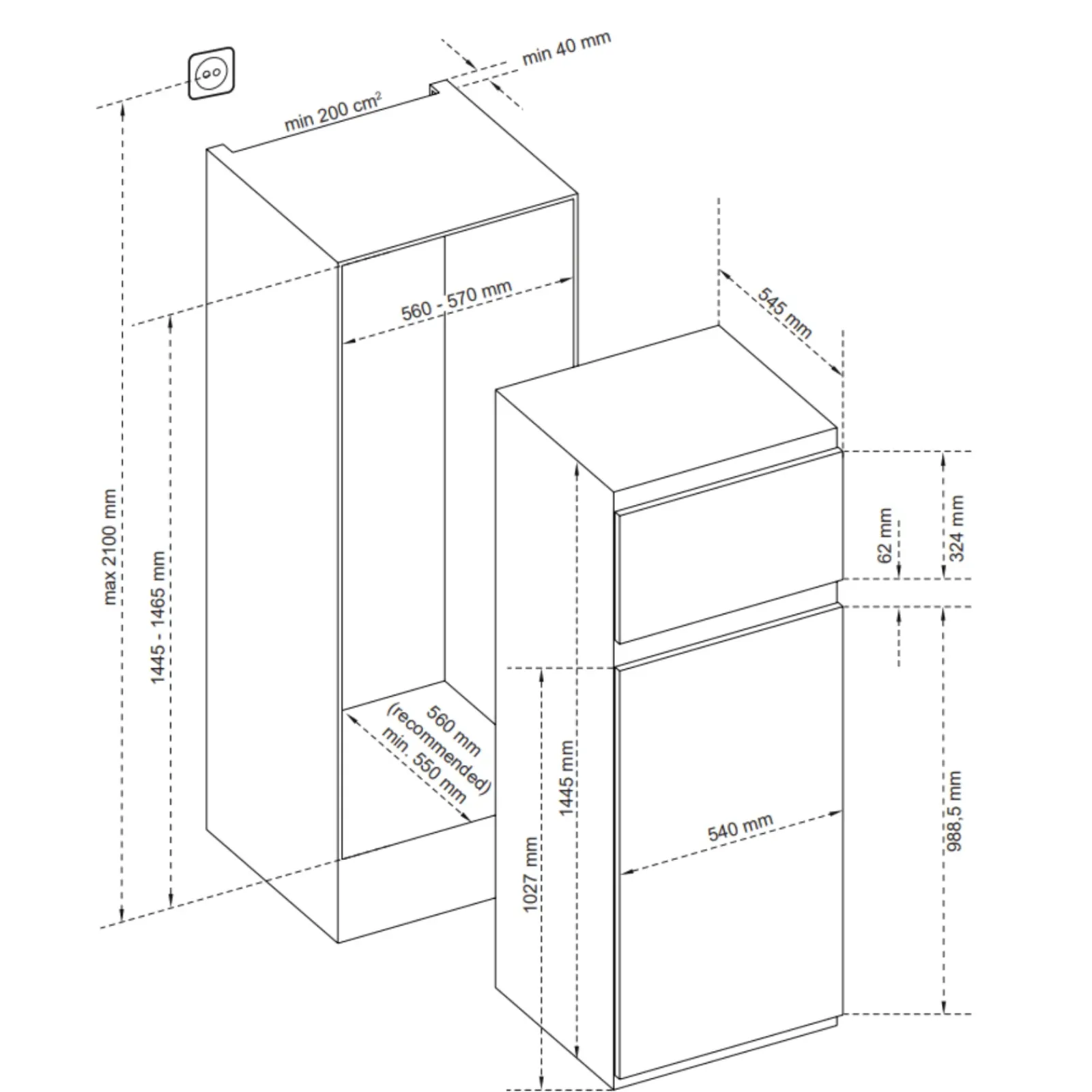 Frigorifero Atlantic da 230L a incasso con doppia porta, in colore bianco. Ottimizzato per adattarsi a cucine integrate, offre un comparto frigorifero spazioso e un congelatore separato, con ripiani regolabili e cassetti per frutta e verdura. Il design elegante e la finitura bianca lo rendono perfetto per armonizzarsi con qualsiasi arredamento, garantendo al contempo un’efficiente conservazione degli alimenti.