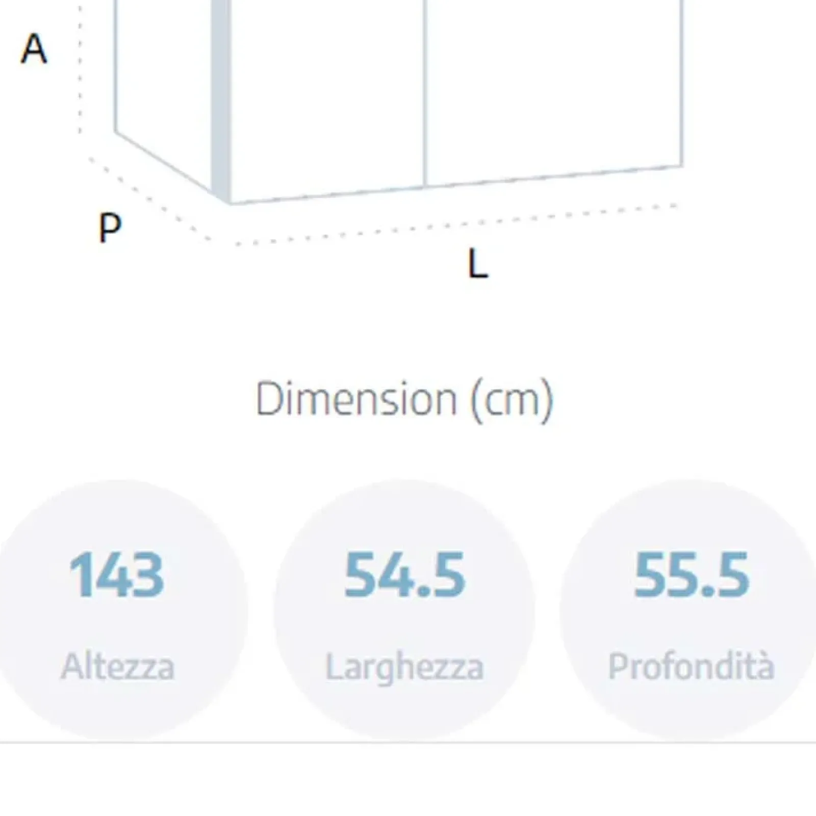 – Dimensioni: L.54.5 x H.143 x P.55.5 cm
