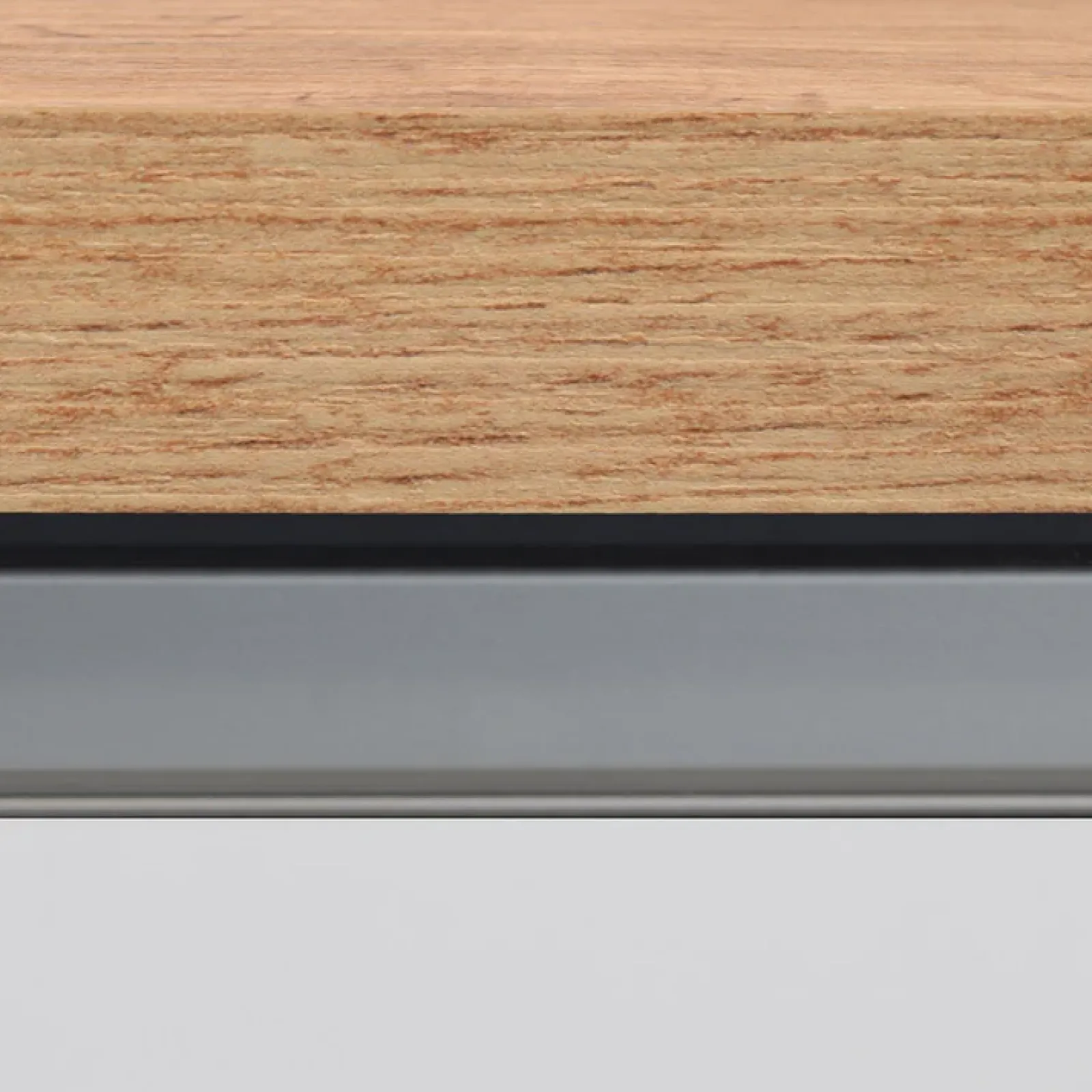 Le sue 3 ante battenti nascondono ampi vani interni, perfetti per organizzare e riporre ogni tipo di utensile o provvista. Le maniglie in alluminio incassate nello spessore delle ante, con chiusura soft close, conferiscono un tocco moderno alla struttura.