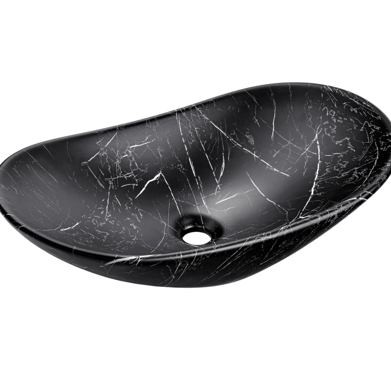 Lavabo bagno da appoggio 61x36cm ceramica nero oro Spuky