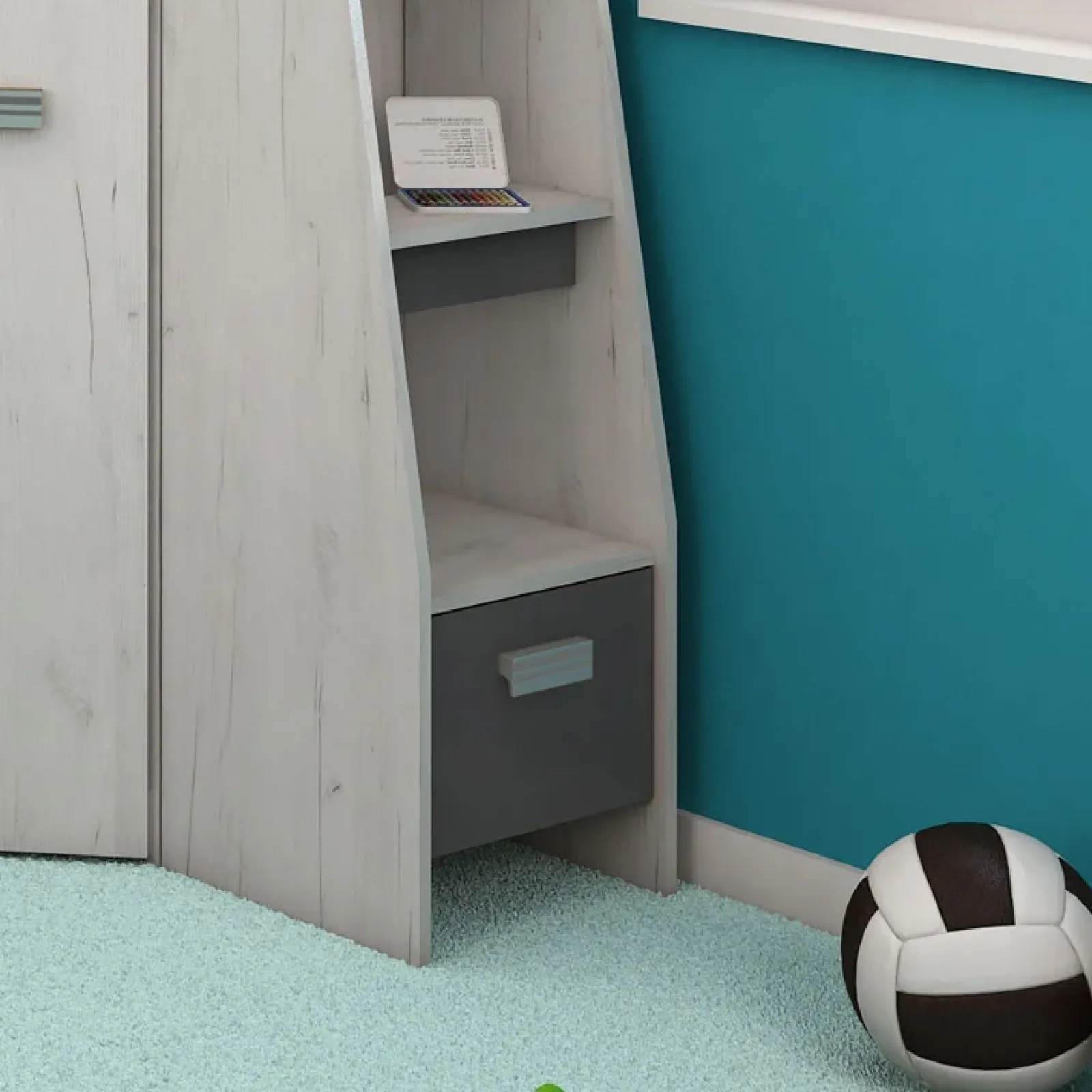 Il letto a soppalco Dollie Gihome® destra nella finitura bianco pino e grafite si abbina bene a pavimentazioni in legno o finto legno dalle tonalità chiare. Questa tipologia di rivestimento è la più indicata per le camerette di bambini e ragazzi, in quanto conferisce un aspetto confortevole e famigliare. Dona all’ambiente atmosfere raffinate e naturali, riuscendo a valorizzare la presenza di mobili e arredamenti.