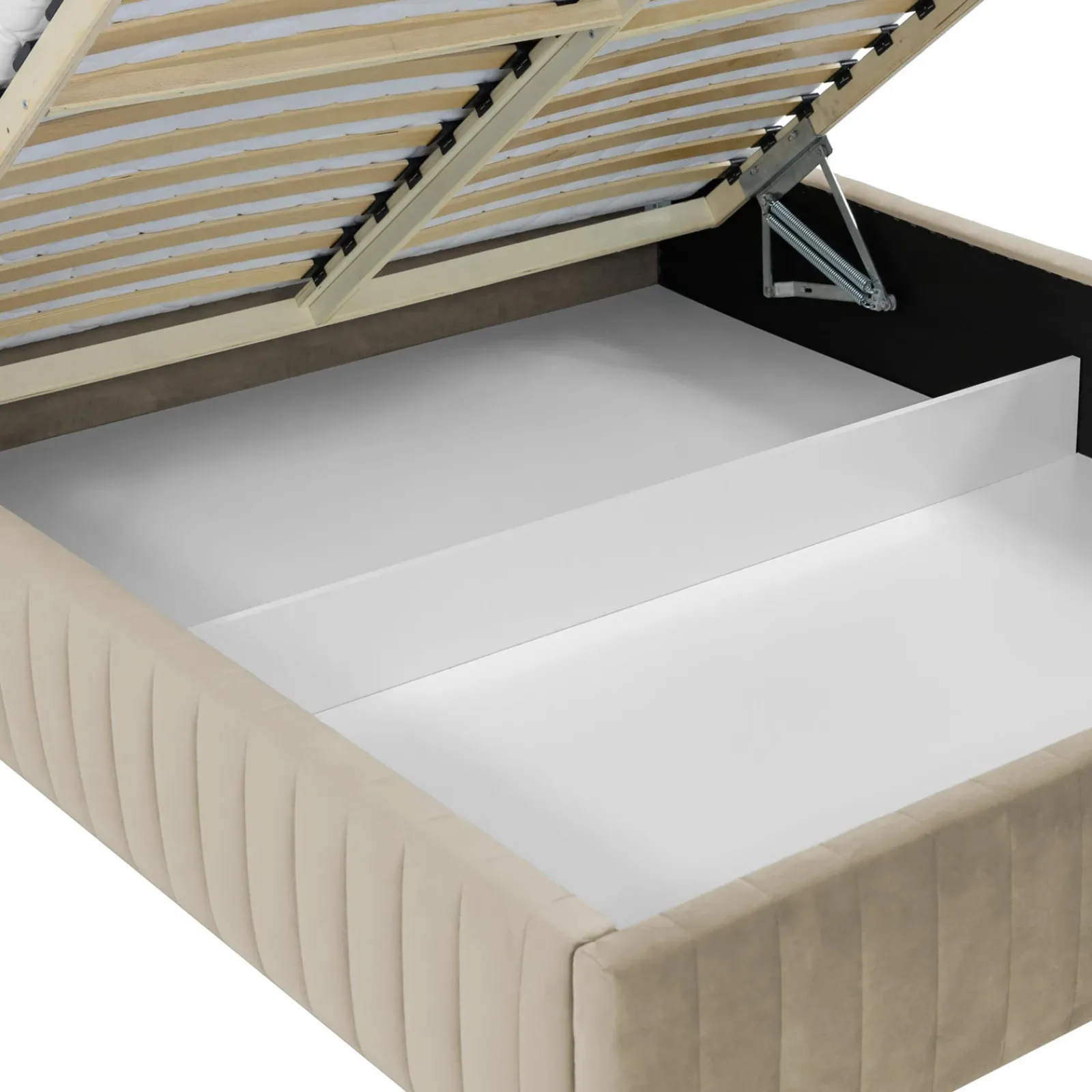 Letto contenitore matrimoniale 160×200 imbottito velluto beige Poffi