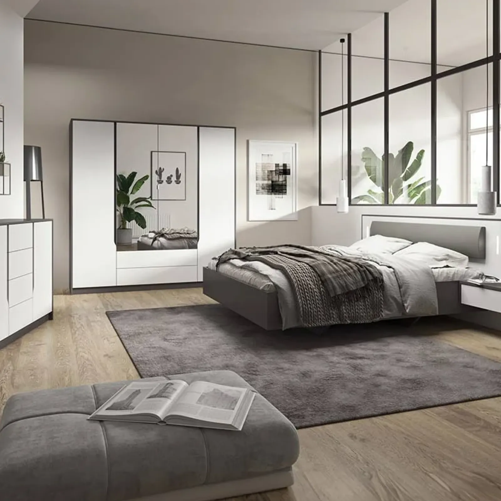 Letto matrimoniale 160x200cm con comodini grigio scuro bianco Allison: dualità di finitura per uno stile che stupisce e lascia tutti a bocca aperta!