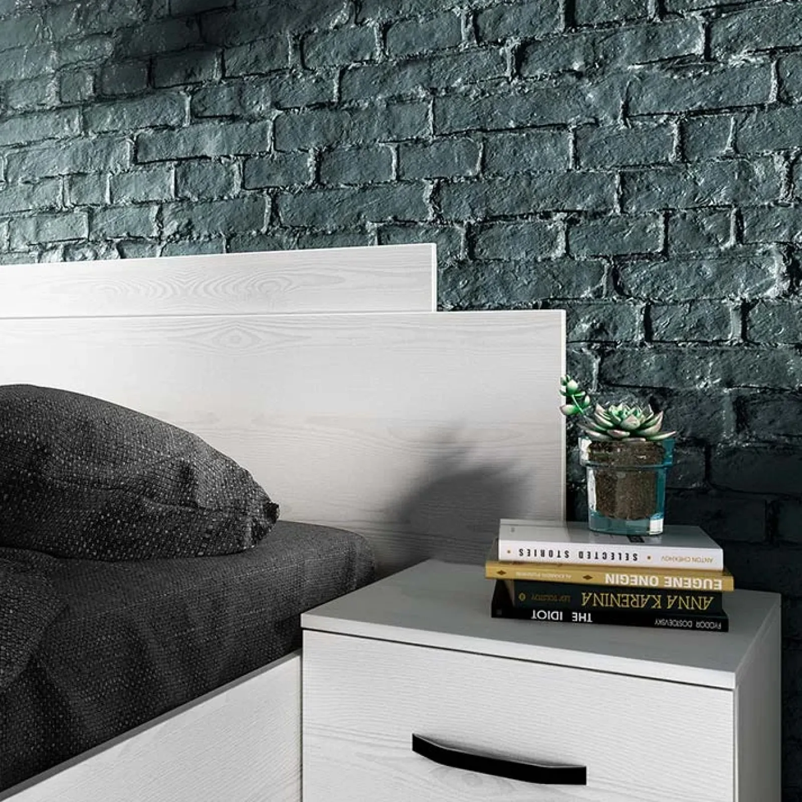 Letto matrimoniale Angara con comodini pino bianco: una soluzione moderna e raffinata, dotata di tutto il necessario per garantire il massimo comfort.