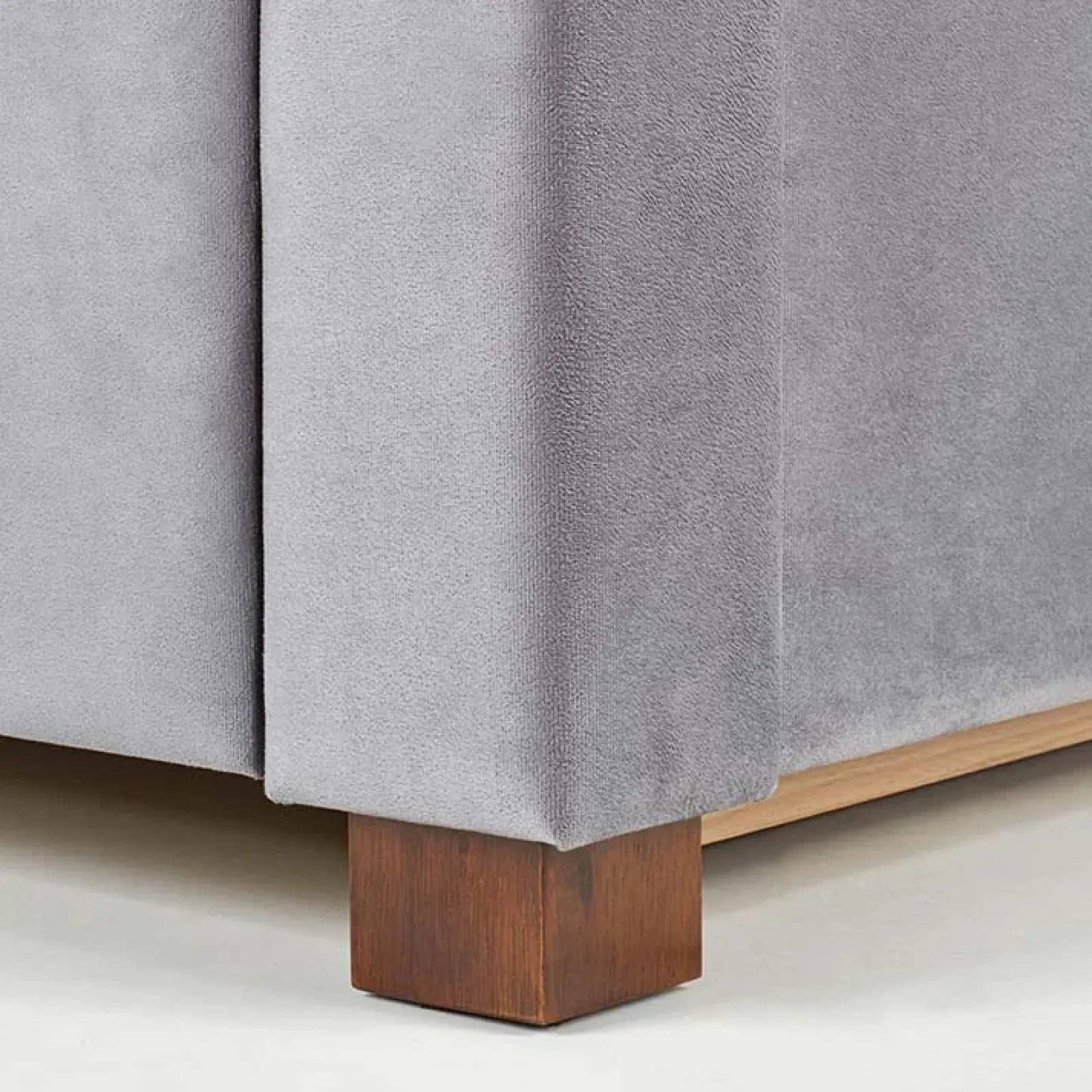 Proposto in tessuto grigio e piedini in noce, Ravello è il letto matrimoniale ideale per leggere la sera prima di andare a letto!
