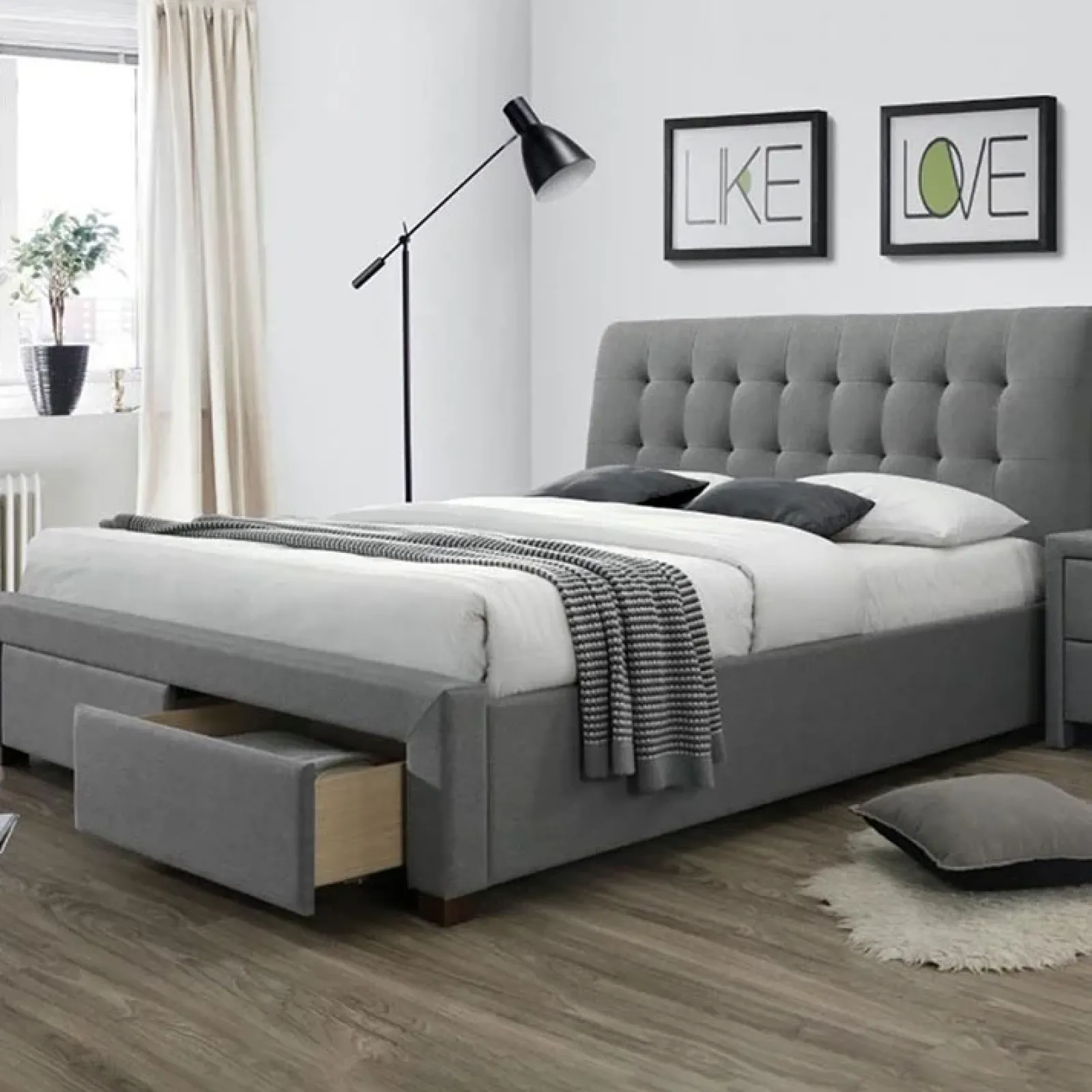Garnero Arredamenti Letti Matrimoniali|Letti Matrimoniali-Letto matrimoniale in tessuto con cassettoni 160x200cm grigio Anita Gihome®