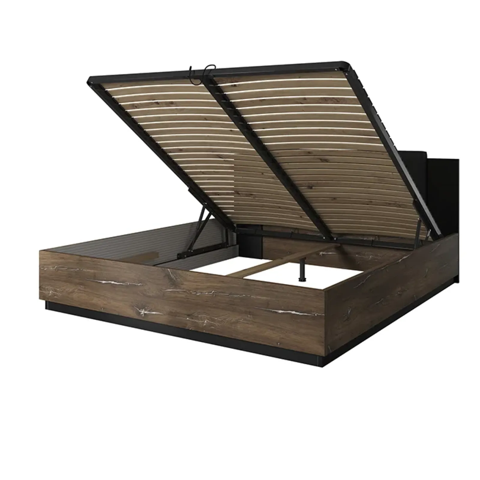 Letto matrimoniale 180x200cm con rete contenitore rovere scuro nero Vulcano