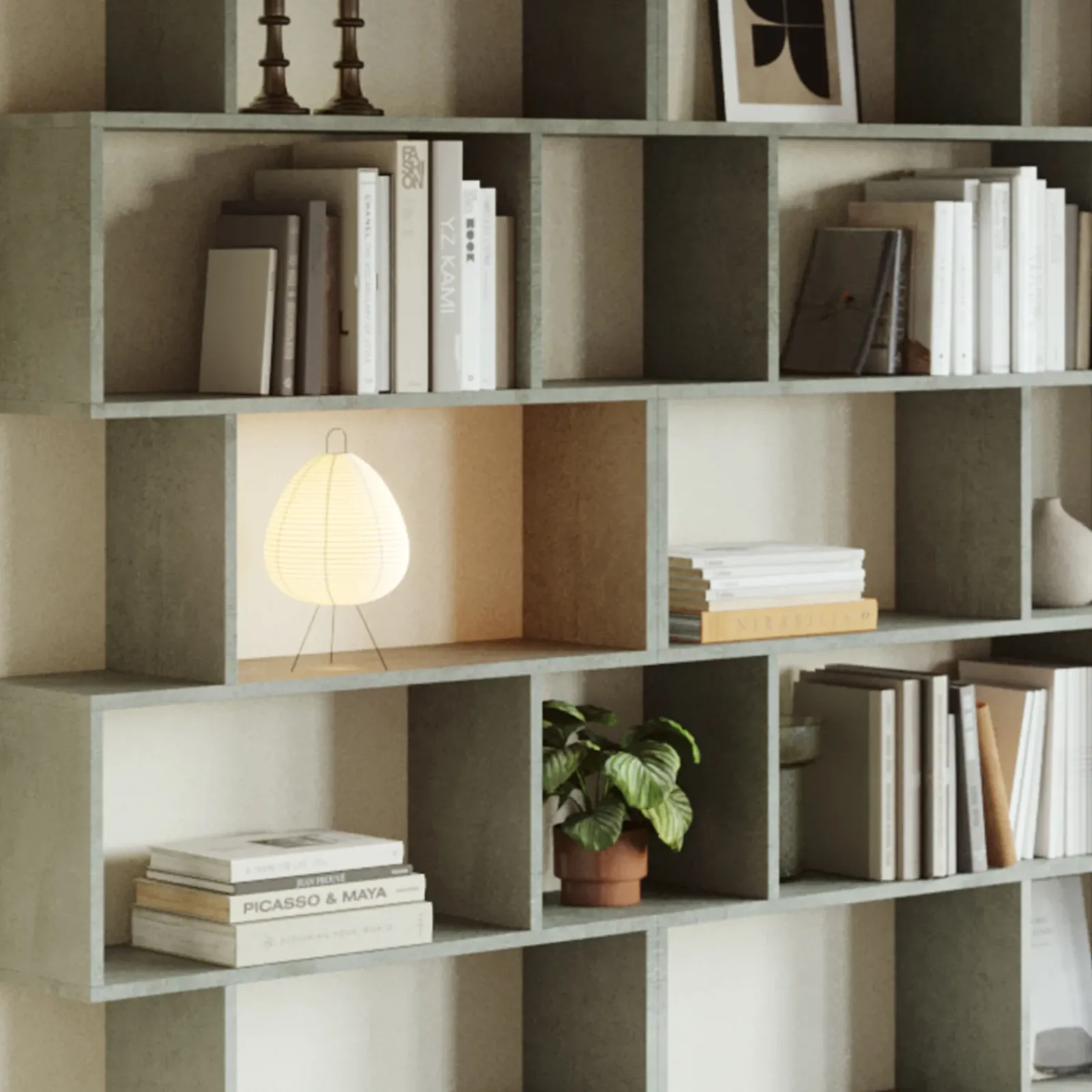 Libreria moderna parete soggiorno Shelf cemento: una proposta dal design geometrico e originale, perfetta per arredare in modo funzionale qualsiasi ambiente!