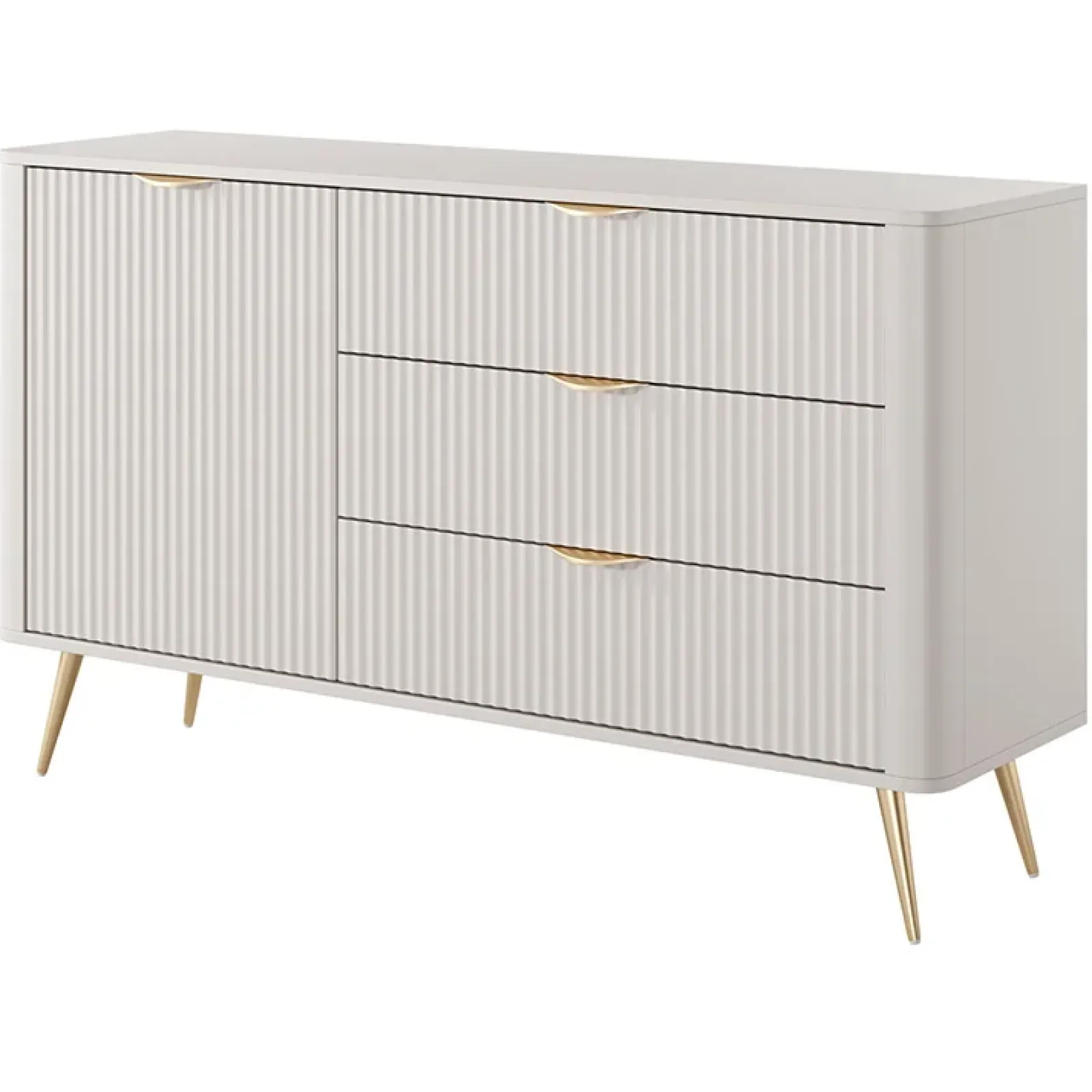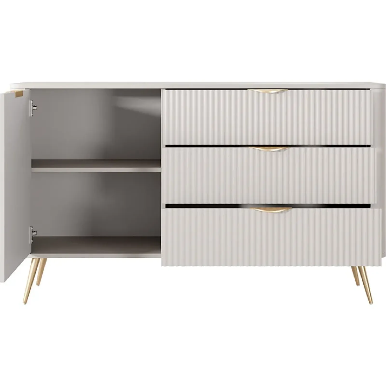 Garnero Arredamenti Madie Moderne|Madie Moderne-Madia 138x81h cm 1 anta 3 cassetti cannettato Ramis Beige