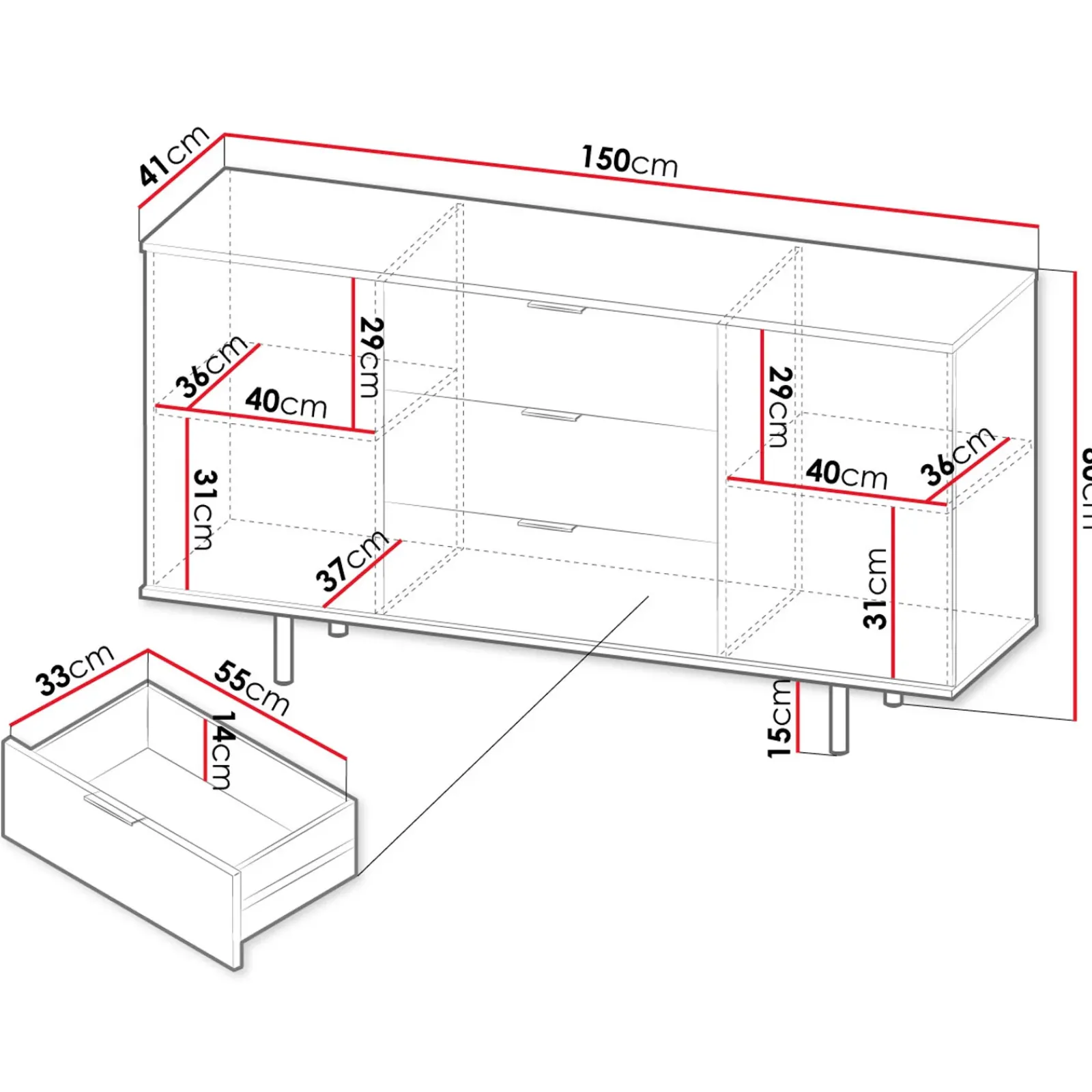 | Dimensioni | L.150 x H.80 x P.41 cm |