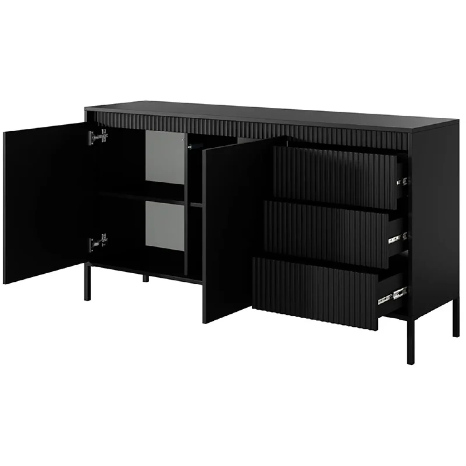 Madia 154x82cm 2 ante 3 cassetti nero opaco cannettato Ciar