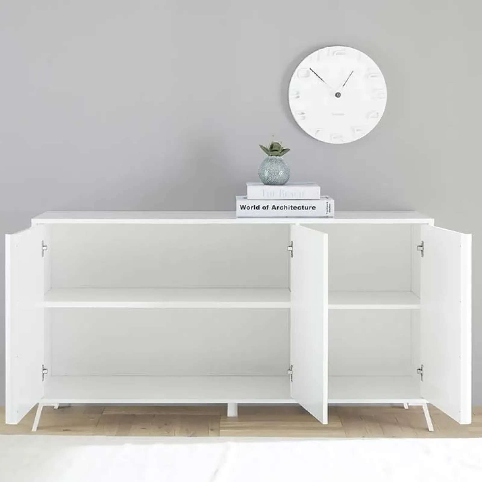 Madia moderna soggiorno 3 ante 156x84cm bianco lucido Tosca