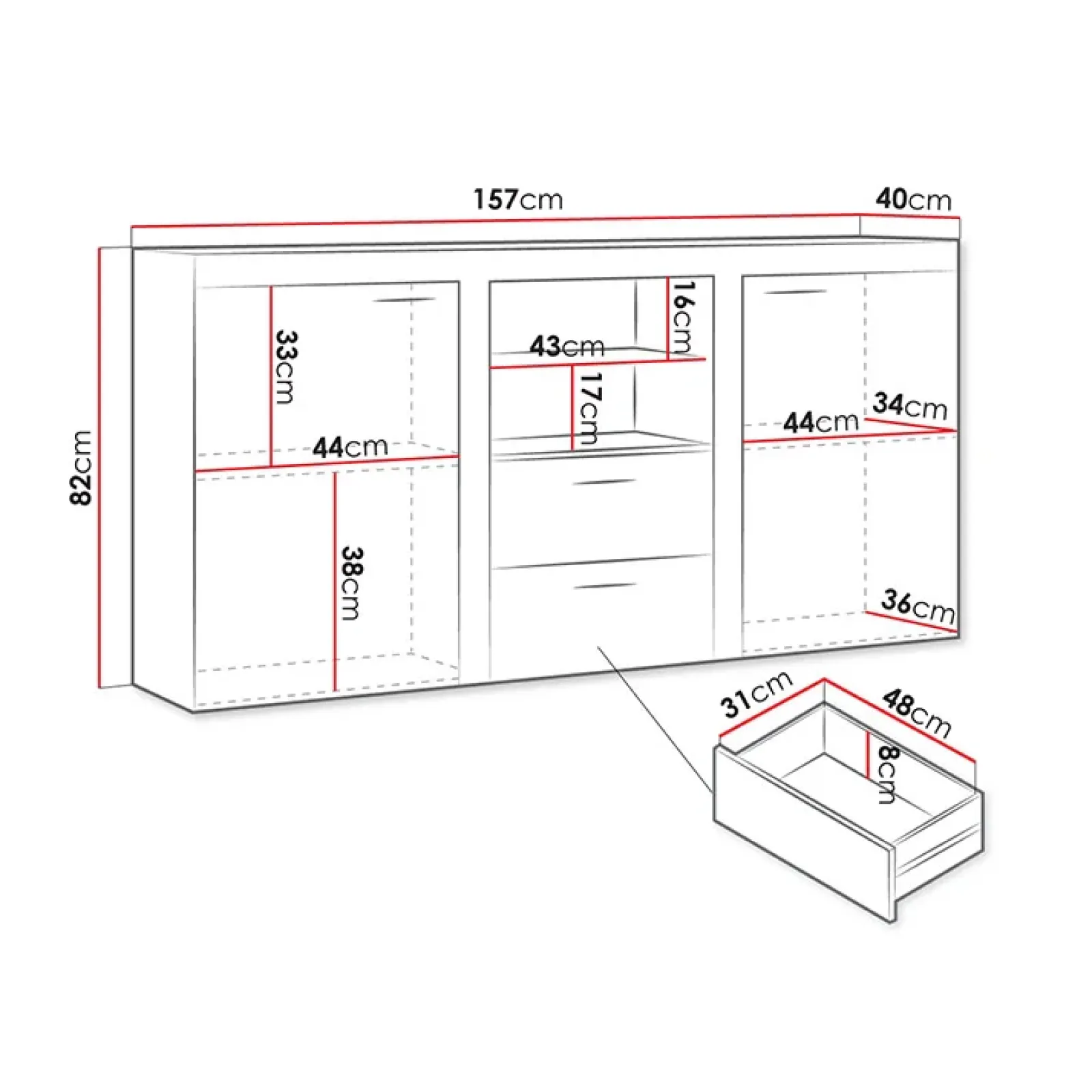 Garnero Arredamenti Madie Moderne|Madie Moderne-Madia 157x82h cm 2 ante 2 cassetti moderna bianco Haarlem Bianco Opaco