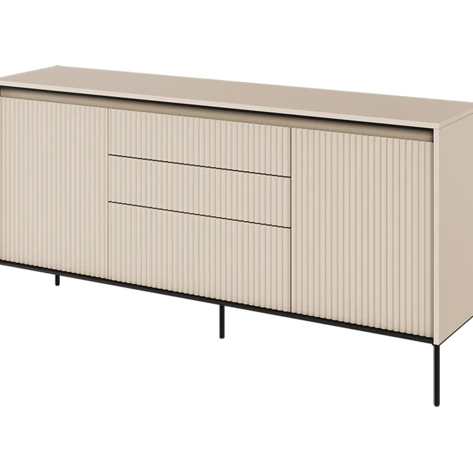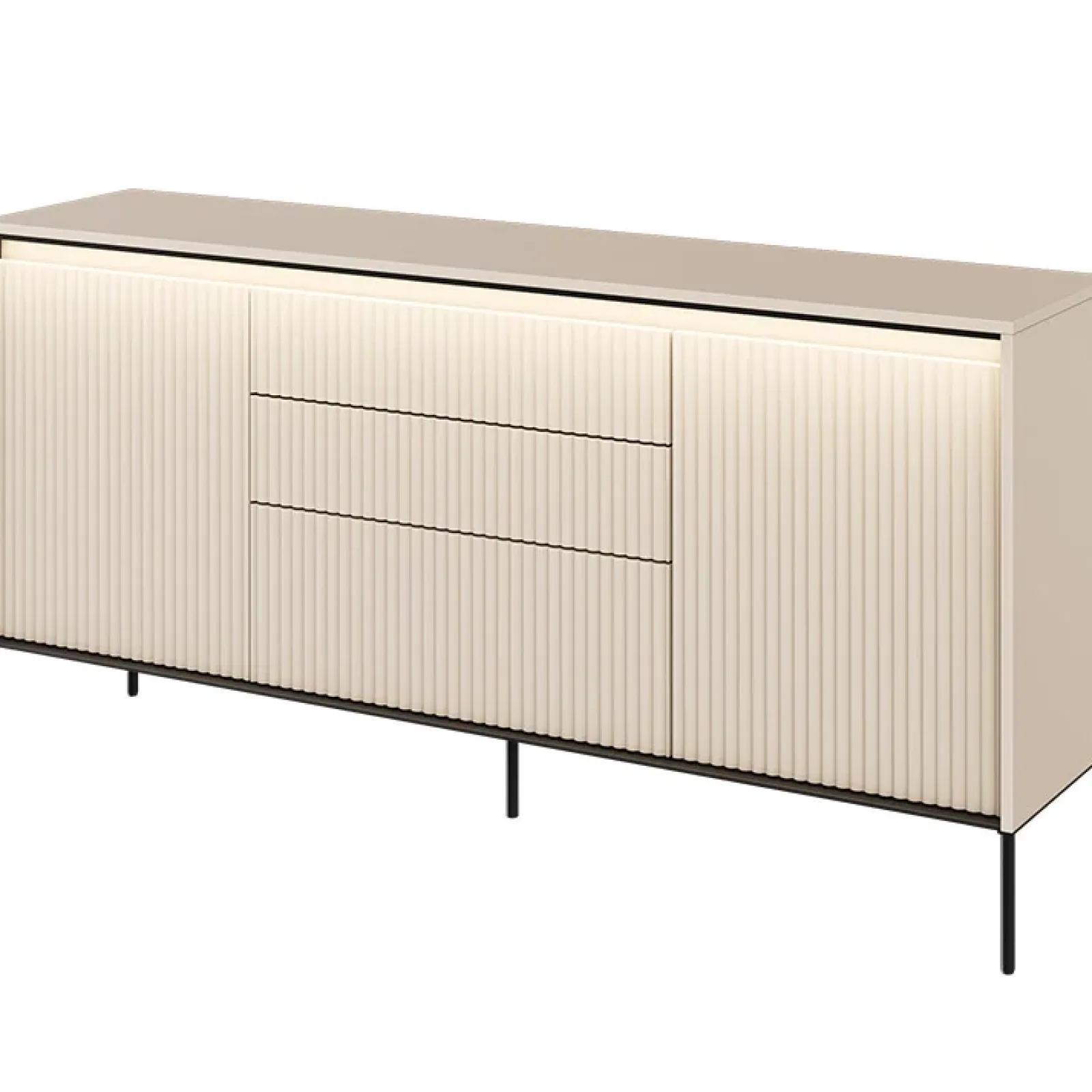 Garnero Arredamenti Madie Moderne|Madie Moderne-Madia 166x83h cm 2 ante 3 cassetti con led cannettato nero Camelia Beige