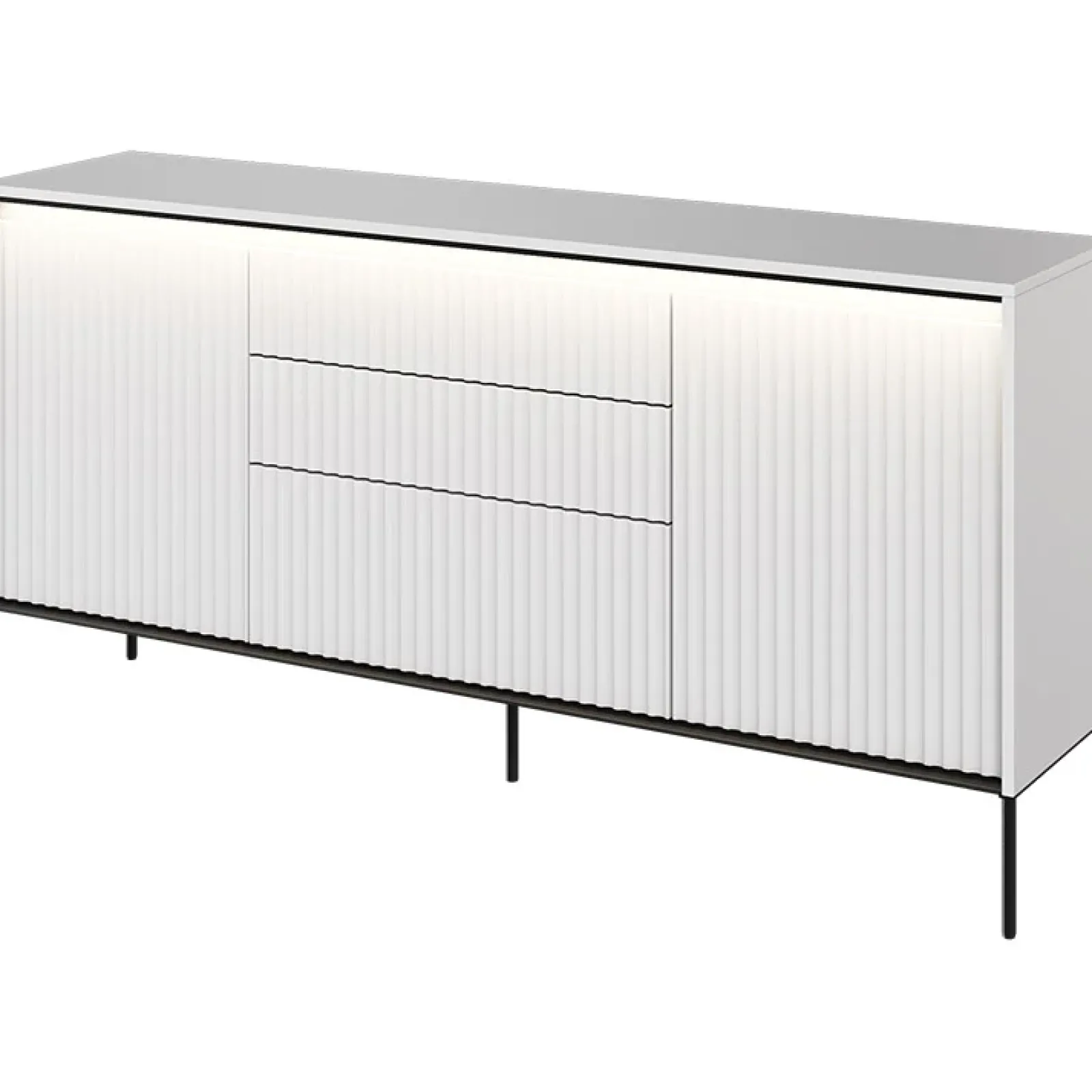 Madia 2 ante 3 cassetti led 166x83cm cannettato bianco opaco nero Camelia