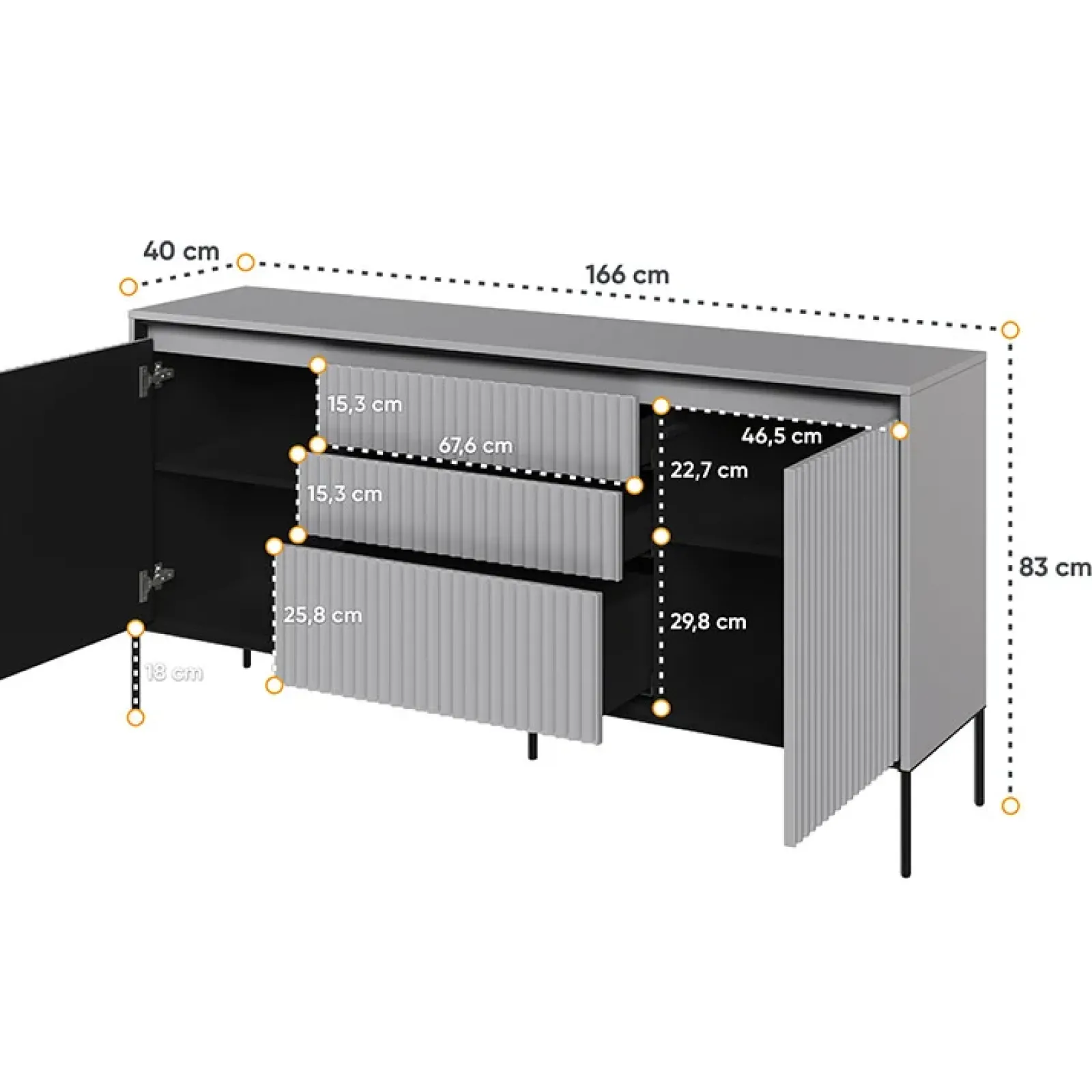 Madia 2 ante 3 cassetti led 166x83cm cannettato grigio nero Camelia