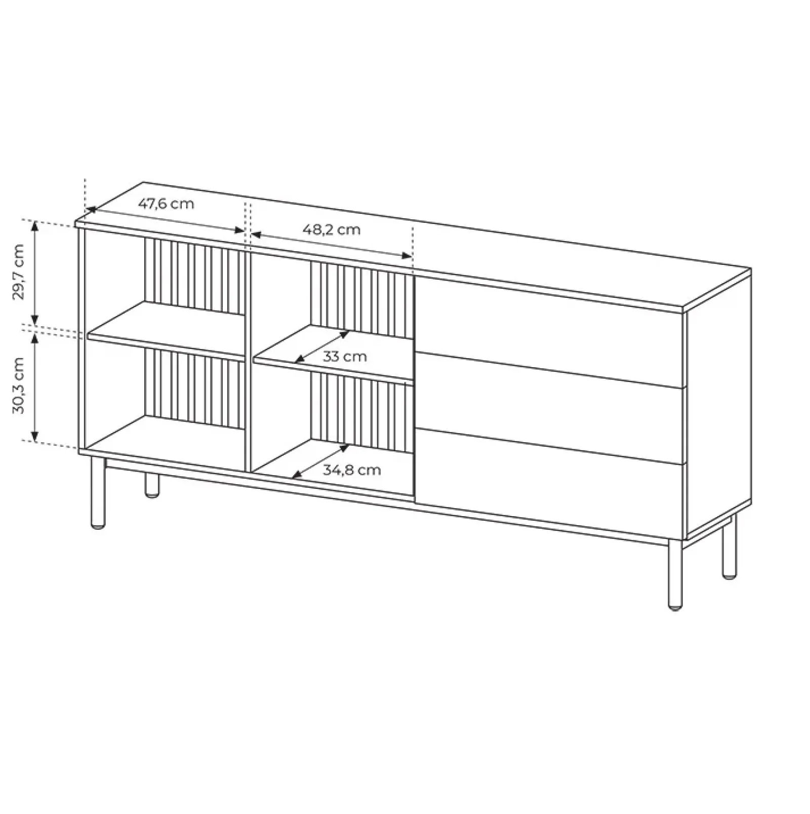 Cerchi un modo elegante per ottimizzare lo spazio e dare un tocco di classe al tuo soggiorno? La madia moderna Amel è la scelta perfetta per te! Progettata nei minimi dettagli, è dedicata a chi desidera un perfetto equilibrio tra stile e funzionalità. Con una raffinata finitura bicolore in rovere e nero opaco, la madia Amel porta un tocco di eleganza contemporanea nel tuo ambiente. Le sue due ante vetrate, dotate di un pratico meccanismo push to open, si aprono per rivelare due ripiani interni, creando quattro vani a vista ideali per esporre libri, decorazioni e oggetti personali con gusto. Le linee eleganti e la combinazione di materiali la rendono estremamente versatile, perfettamente adattabile a qualsiasi stile d’arredo. Inoltre, i tre ampi cassetti offrono una soluzione pratica per riporre utensili, documenti e piccoli oggetti, mantenendo tutto in ordine e a portata di mano. Funzionale e bella, la madia moderna Amel ti permette di organizzare con stile, grazie alla sua lunghezza che offre ampio spazio per riporre e sistemare gli oggetti, mantenendo il soggiorno impeccabile. La struttura poggia su piedini in legno nero alti 20 cm, che donano un senso di leggerezza all’ambiente. E per aggiungere un tocco in più, i LED integrati illuminano splendidamente i tuoi oggetti esposti, garantendo una visibilità ottimale. Trasforma il tuo soggiorno in uno spazio di classe con la madia Amel!