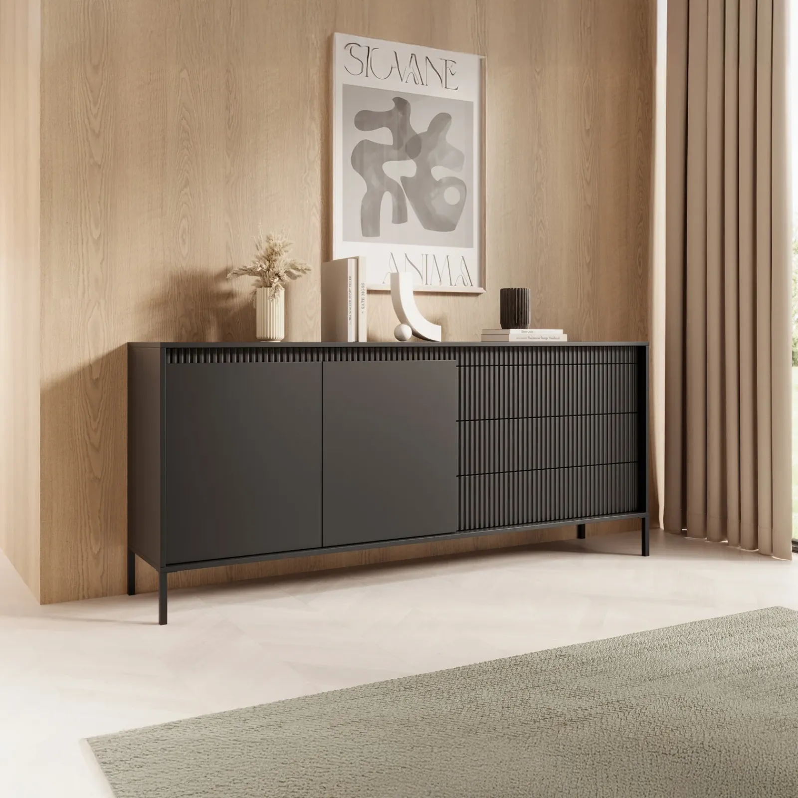 Madia 187x82cm 2 ante 3 cassetti nero opaco cannettato Ciar