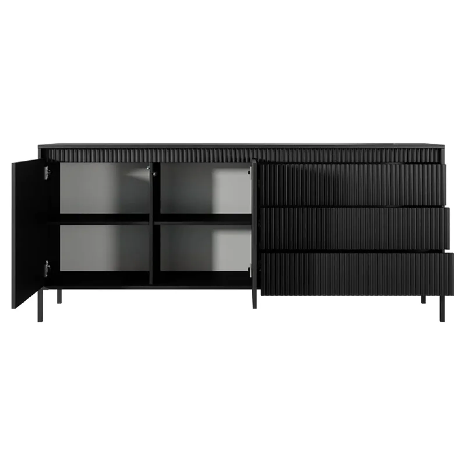 Garnero Arredamenti Madie Moderne|Madie Moderne-Madia 187x82h cm 2 ante 3 cassetti cannettato Ciar Nero Opaco