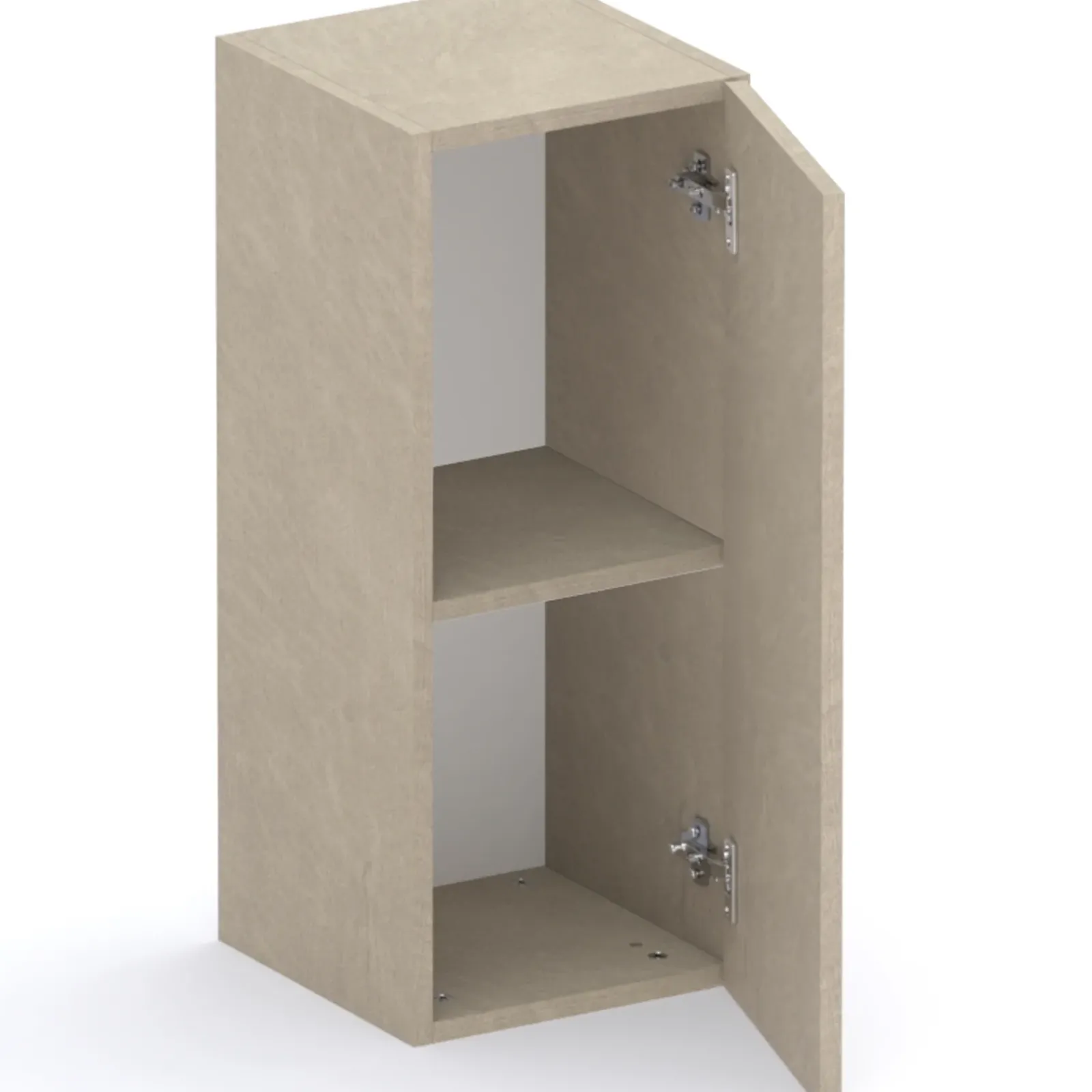 All’interno, il pensile presenta un unico vano ampio, perfetto per riporre oggetti di uso quotidiano, libri, decorazioni o accessori, mantenendo tutto a portata di mano e ben organizzato. L’anta reversibile consente di scegliere l’apertura a destra o a sinistra durante l’installazione, adattandosi facilmente alle esigenze del tuo spazio e della tua configurazione d’arredo.