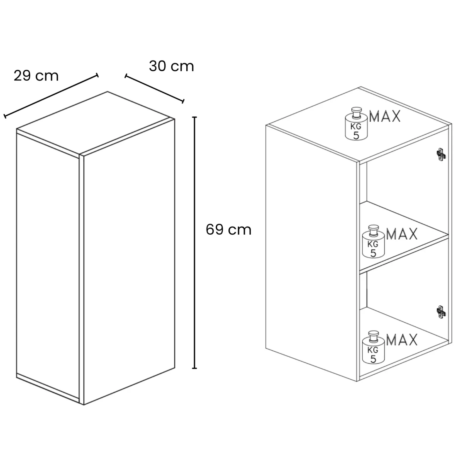 | Dimensioni | L.29 x H.69 x P.30 cm |