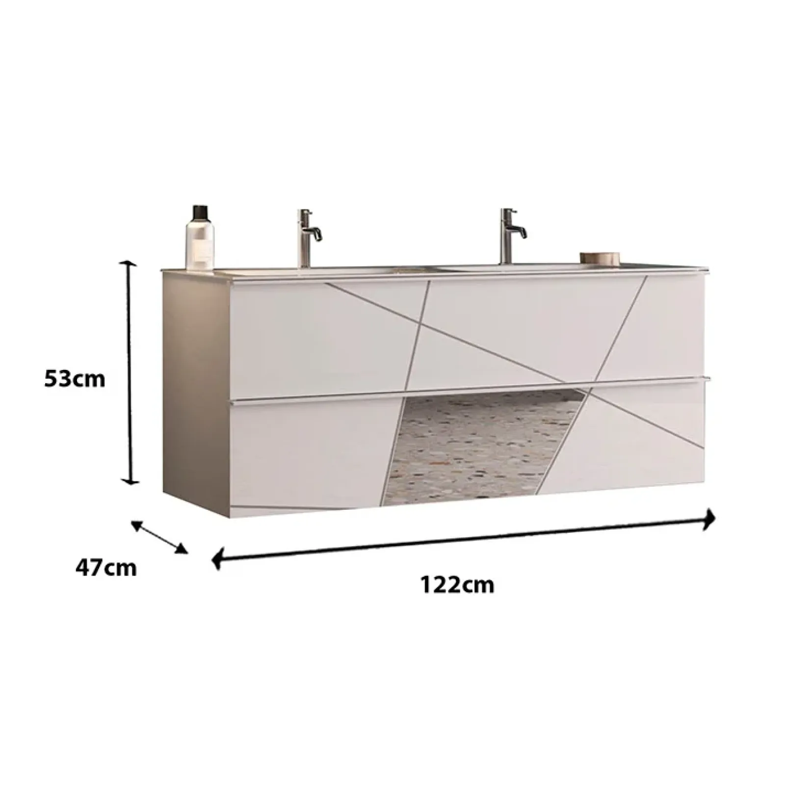 - dimensioni mobile: L.122 x H.53 x P.47 cm