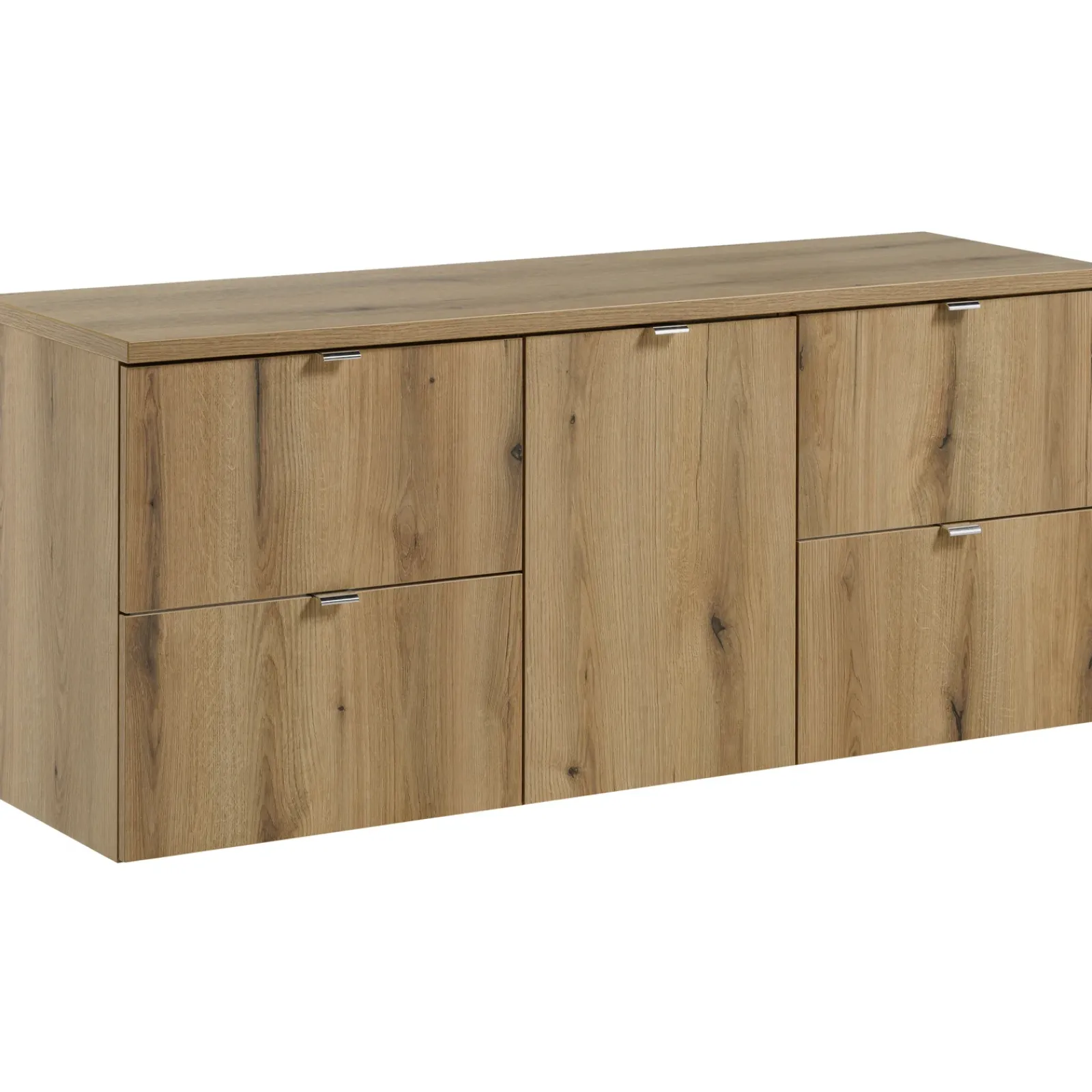 Mobile bagno sospeso 140cm 4 cassetti e portabiancheria rovere Rovery