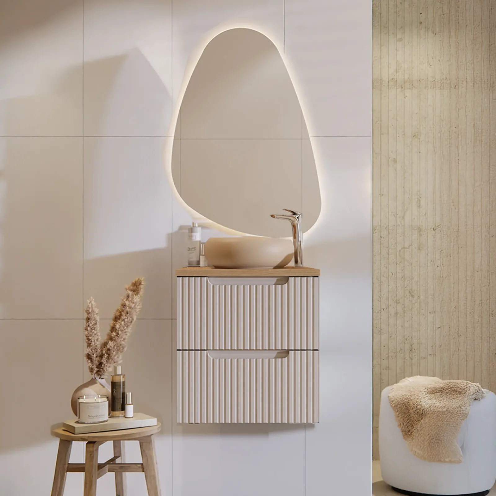 Mobile bagno sospeso 50cm cannettato 2 cassetti beige rovere Cleany
