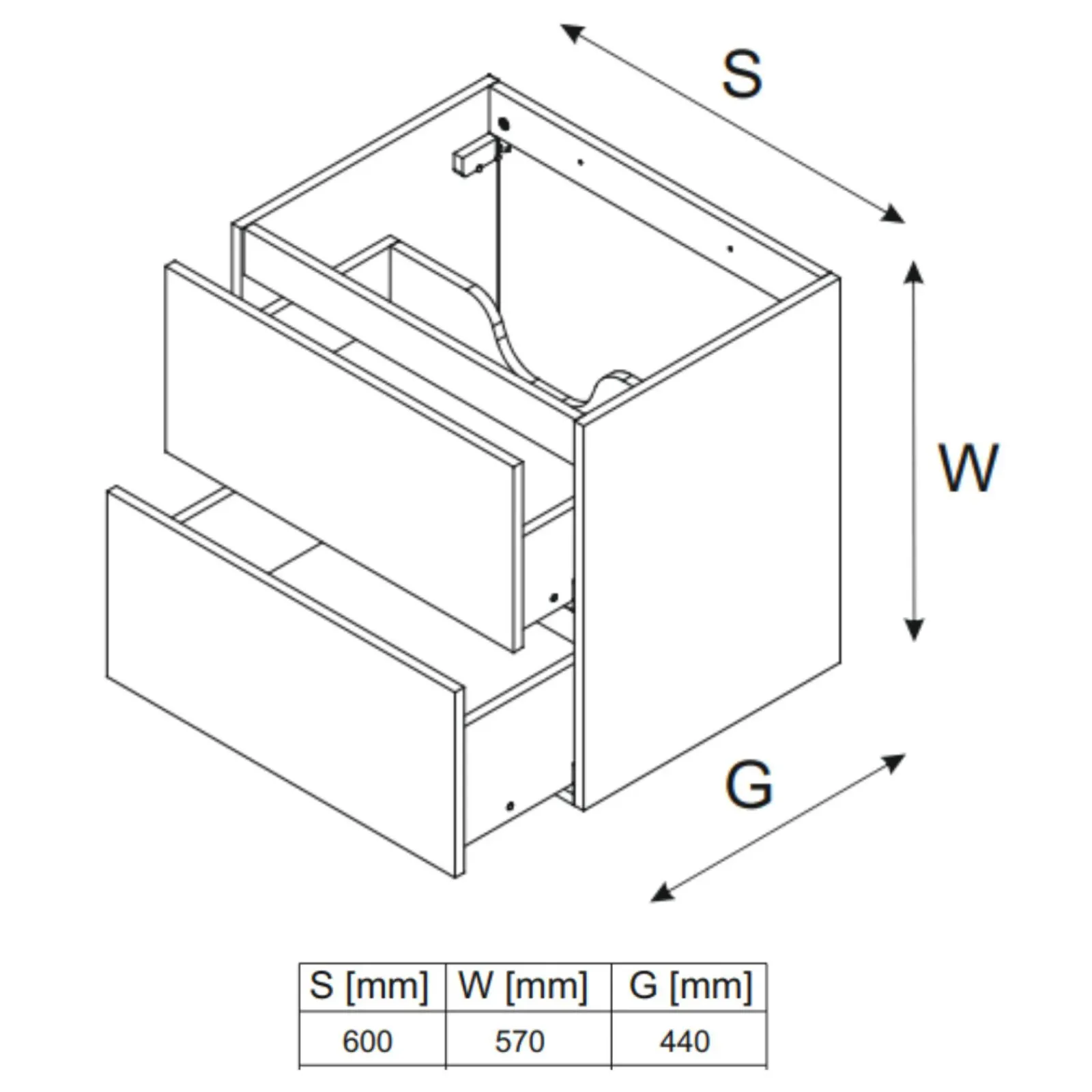 Mobile bagno sospeso 60cm con lavabo da incasso 2 cassetti beige rovere Swim