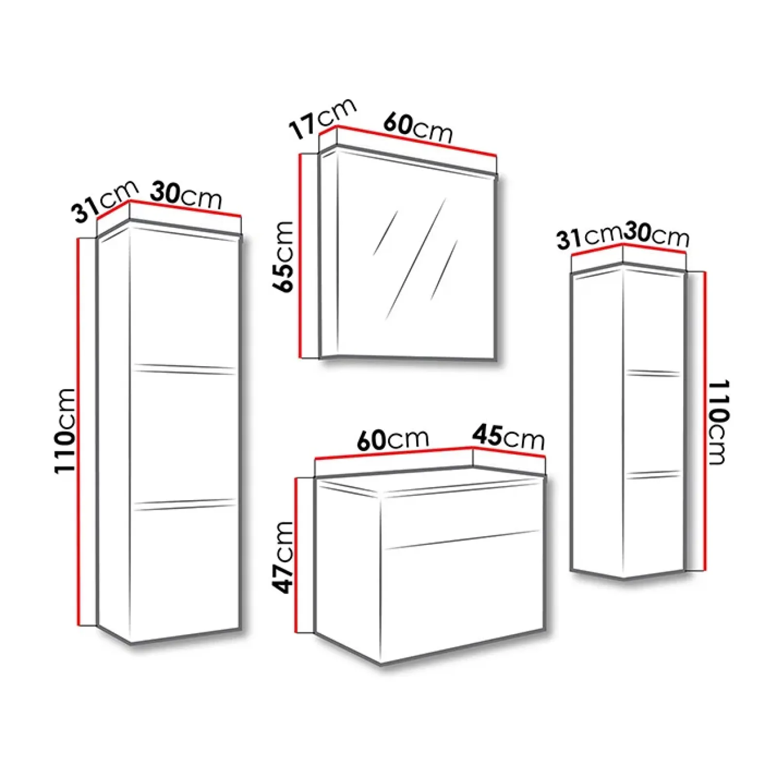 - dimensioni mobile lavabo: L.60 x H.47 x P.45 cm