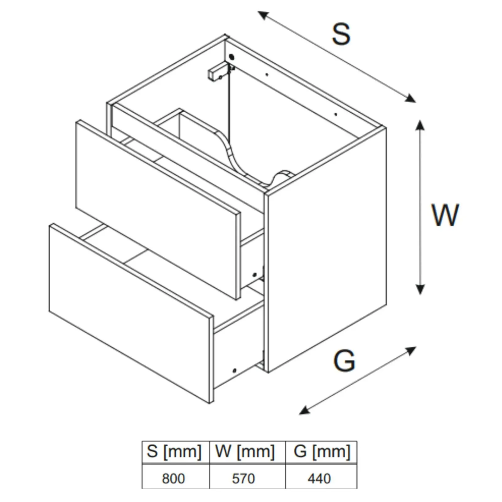 Garnero Arredamenti Mobile Bagno Sospeso-Mobile bagno sospeso 80cm 2 cassetti nero rovere Swim Nero – Rovere