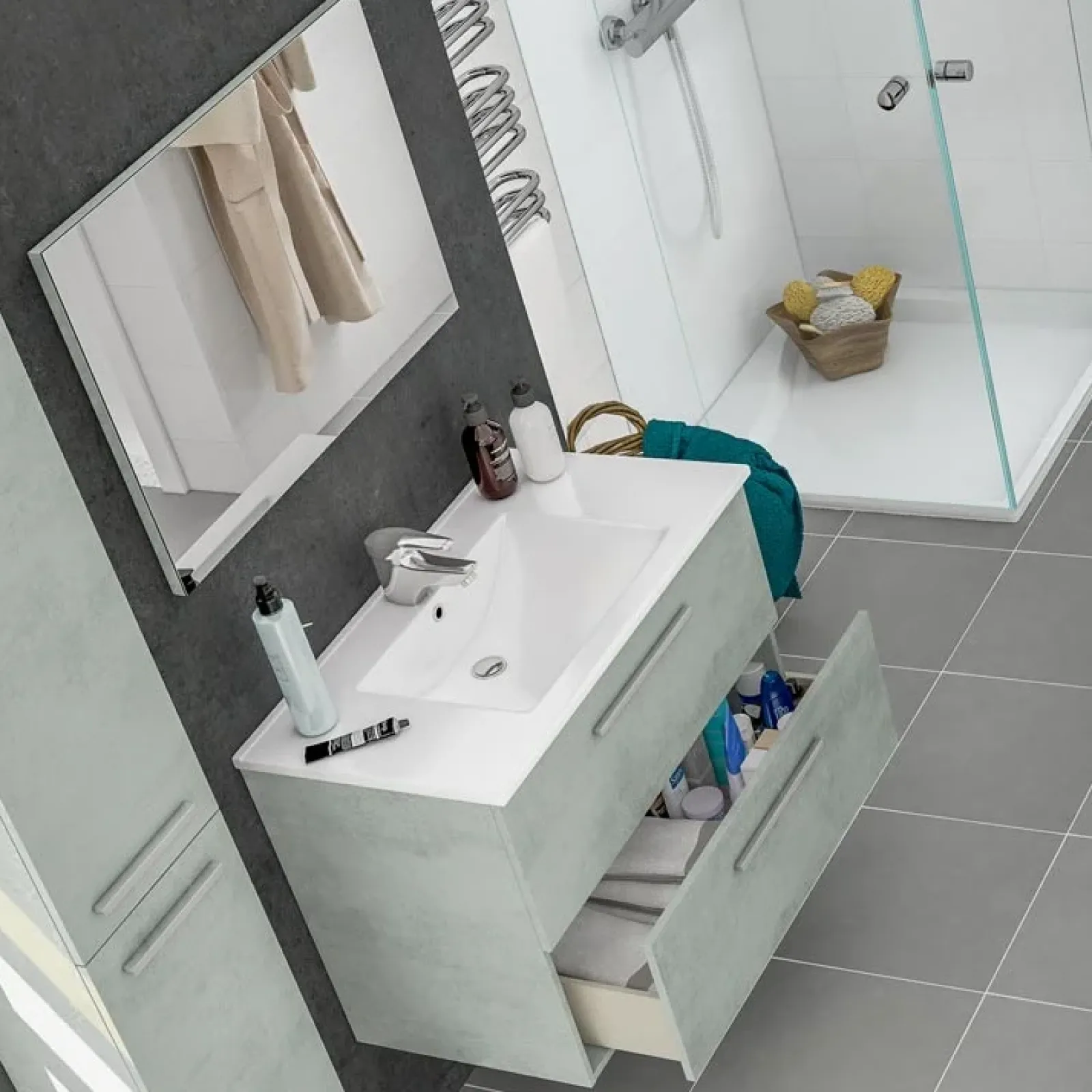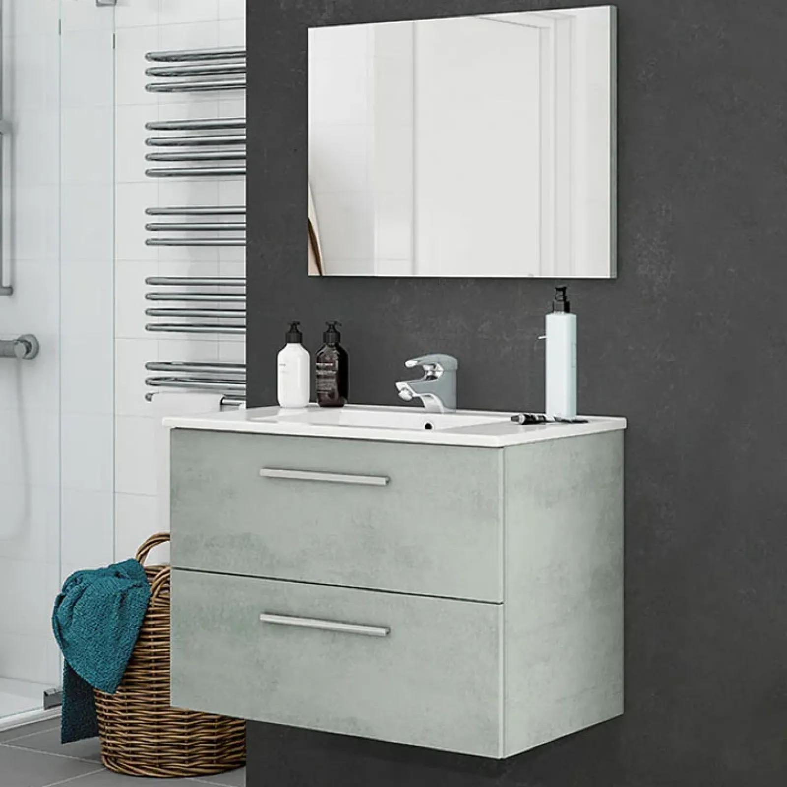 Mobile bagno base + specchio + lavandino Oscar cemento