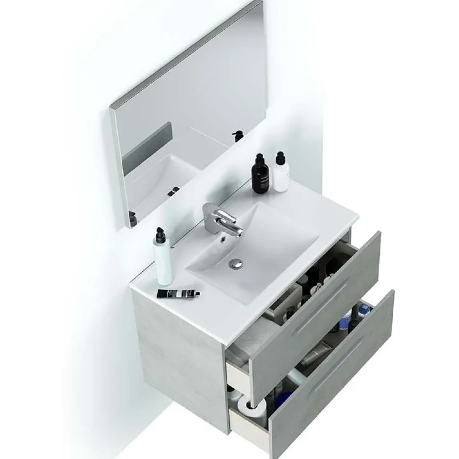 Garnero Arredamenti Mobile Bagno Sospeso-Mobile bagno sospeso 80cm con lavabo e specchio cemento bianco Oscar