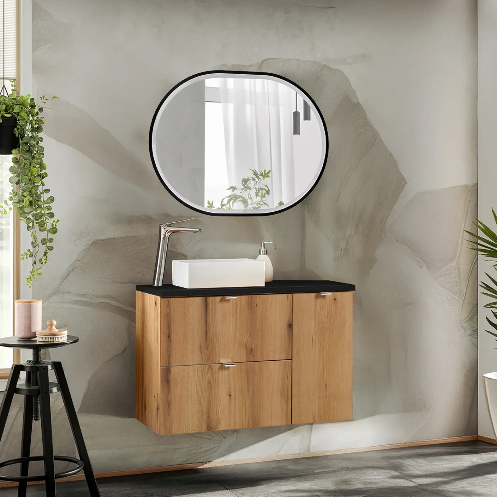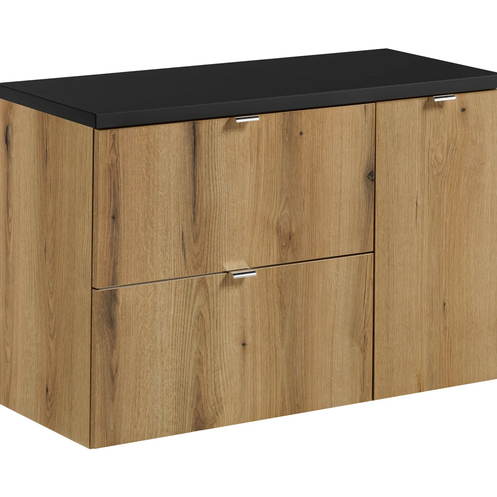 Mobile bagno sospeso 90cm 2 cassetti 1 anta rovere nero Rovery