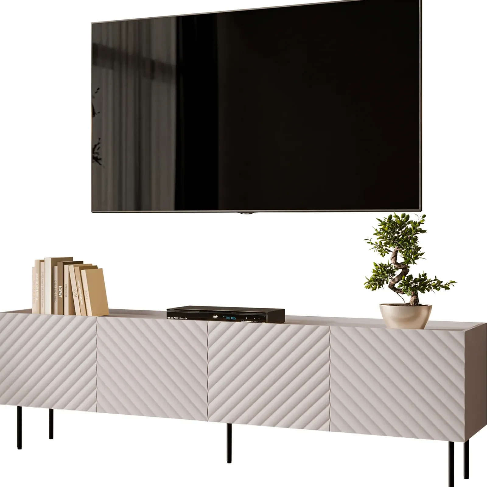 Mobile porta TV 200x59cm 4 ante con frontali decorati beige Daniele