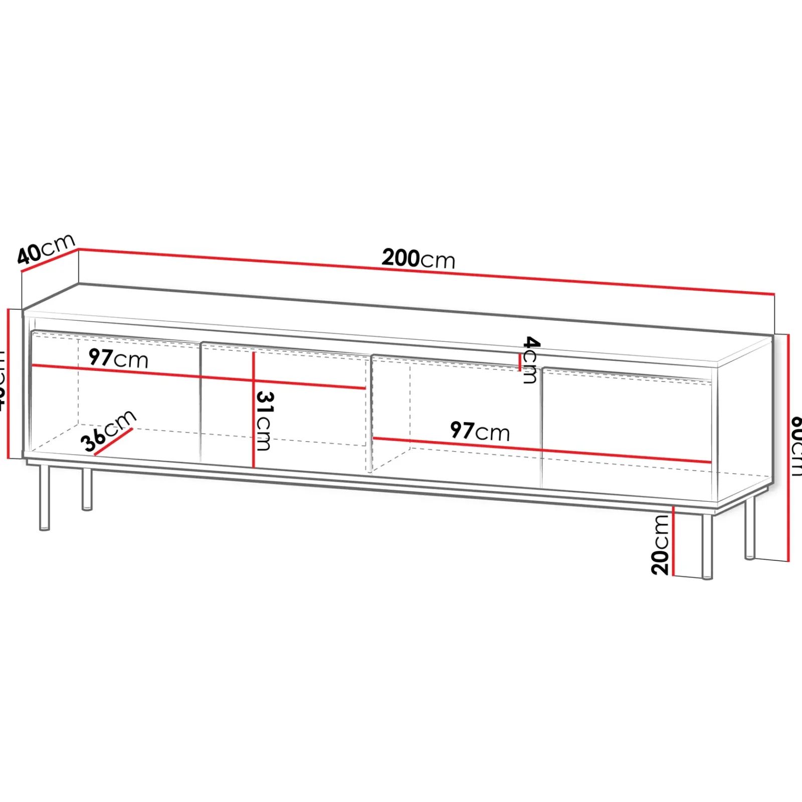 | Dimensioni | L.200 x H.60 x P.40 cm |